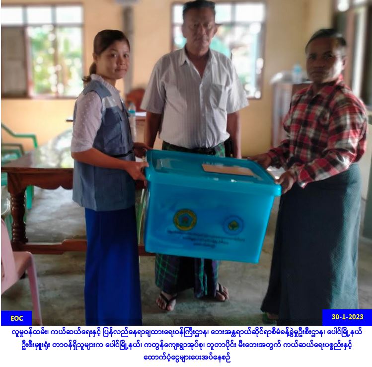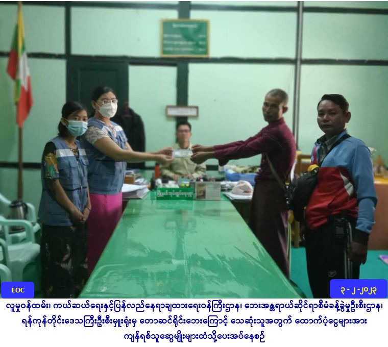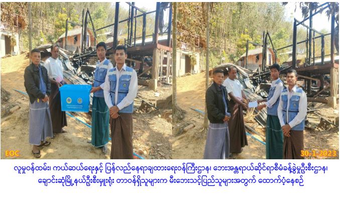 လူမှုဝန်ထမ်း၊ ကယ်ဆယ်ရေးနှင့် ပြန်လည်နေရာချထားရေးဝန်ကြီးဌာန၊ ဘေးအန္တရာယ်ဆိုင်ရာ စီမံခန့်ခွဲမှုဦးစီးဌာန၊ သထုံခရိုင်၊ ပေါင်မြို့နယ်ဦးစီးမှူးရုံးမှတာဝန်ရှိသူများသည် ပေါင်မြို့နယ်၊ ကတွန်ကျေးရွာအုပ်စု၊ ဘူတာပိုင်း၌(၂၈-၁-၂၀၂၃) ရက်နေ့၊ (၀၀း၃၅)နာရီအချိန်တွင် ဖြစ်ပွား ခဲ့သော မီးလောင်မှုကြောင့်ဘေးသင့်ခဲ့သည့်လူနေအိမ် (၁) လုံးမှ အိမ်ထောင်စု (၁)စုအတွက် ကယ်ဆယ်ရေးပစ္စည်း (၁၇)မျိုး၊ အိမ်ဆောက်ပစ္စည်းဖိုးထောက်ပံ့ငွေ(၁၀၀,၀၀၀/-)ကျပ်နှင့် ဘေးသင့်အိမ်ထောင်စု (၁)စုမှ လူဦးရေ (၆) ဦးအတွက် (၇)ရက်စာ ဆန်ရိက္ခာဖိုးငွေ (၁၂,၆၀၀/-)၊ စုစုပေါင်းထောက်ပံ့ငွေ (၁၁၂,၆၀၀/-) ကျပ်တို့အား (၃၀-၁-၂၀၂၃)ရက်နေ့၊ (၁၂း၀၀) နာရီအချိန်ခန့်တွင် ဘေးသင့်ပြည်သူများလက်ဝယ်အရောက် ထောက်ပံ့ပေးအပ်ခဲ့ကြောင်း သတင်းရရှိပါသည်။ Source: … Read more