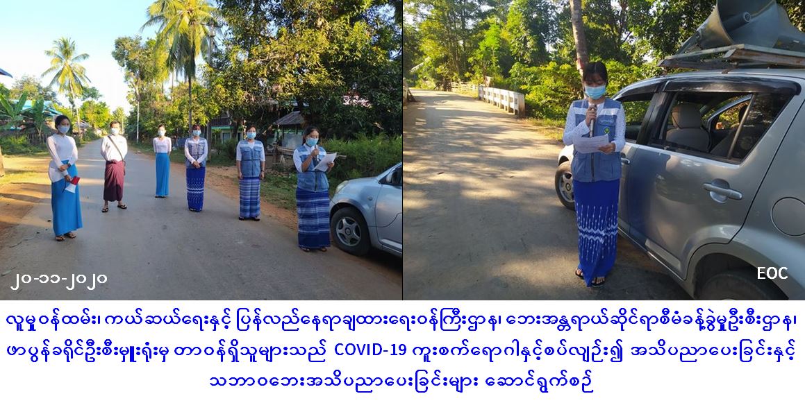 COVID-19 ကူးစက်ရောဂါနှင့်စပ်လျဉ်း၍ အသိပညာပေးခြင်းနှင့် သဘာဝဘေးအသိပညာပေးခြင်းများ ဆောင်ရွက်မှုသတင်း