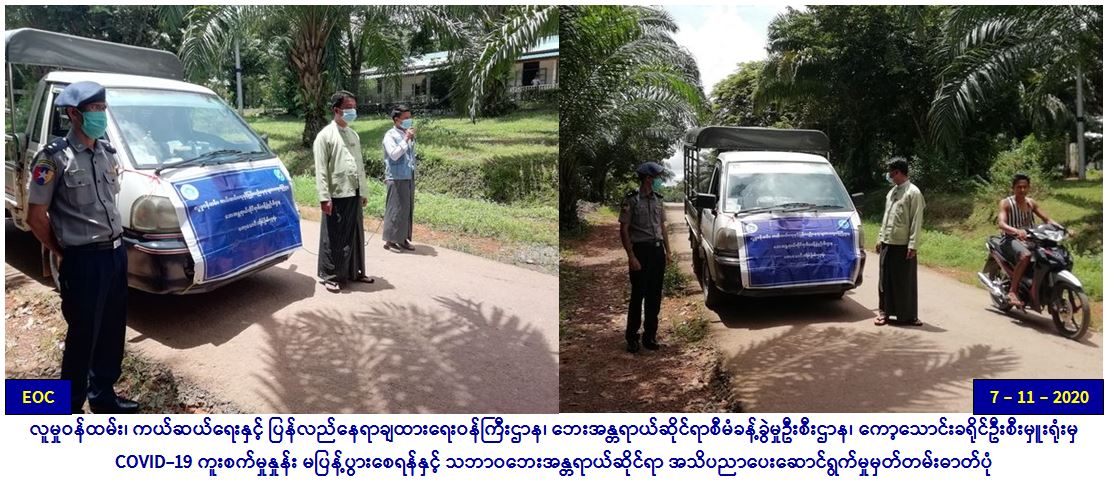 Covid-19 ကူးစက်မှု မဖြစ်ပွားစေရန် အသိပညာပေးခြင်းနှင့် သဘာဝဘေးအသိပညာပေးခြင်းများ ဆောင်ရွက်မှုသတင်း