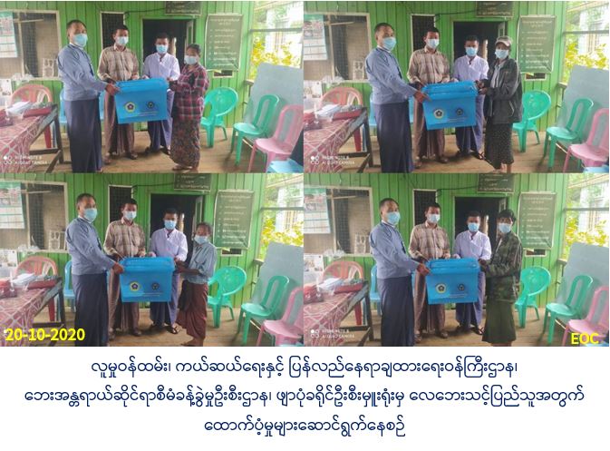 လူမှုဝန်ထမ်း၊ကယ်ဆယ်ရေးနှင့်ပြန်လည်နေရာချထားရေးဝန်ကြီးဌာန၊ ဘေးအန္တရာယ်ဆိုင်ရာစီမံခန့်ခွဲမှု ဦးစီးဌာန၊ ပူတာအိုခရိုင်ဦးစီးမှူးရုံးမှ တာဝန်ရှိသူများသည်(၁၉-၁၀-၂၀၂၀)နေ့တွင် နောင်မွန်းမြို့နယ် ပြည်သူ့လွတ်တော်ကိုယ်စားလှယ်နှင့် ပန်နန်းဒင်မြို့အထွေထွေအုပ်ချုပ်ရေးဦးစီးဌာနမှ တာဝန်ရှိသူများ နှင့်အတူ ပူတာအိုခရိုင်၊ နောင်မွန်းမြို့နယ်၊ ပန်နန်းဒင်မြို့ရှိ (Covid-19)ကာလတွင် စားနပ်ရိက္ခာရှားပါးမှု ကြုံတွေ့နေရသော တဆူထုကျေးရွာအုပ်စုနှင့် ဒဇုံတမ်းကျေးရွာအုပ်စုတို့မှ အိမ်ထောင်စု (၁၅၂) စု၏ လူဦးရေ (၁,၀၂၉) ဦးတို့အတွက် စားနပ်ရိက္ခာ(၃)လစာ ဆန် (၉၆၄) အိတ်၊ (၁၆) ပြည်၊ (၄)ဗူးနှင့် ပူတာအို ဒေသခံပြည်သူများမှ လှူဒါန်းလာသော စောင်နှင့်ဆောင်းဝတ်အနွေးထည် ကျန်ကျောင်းအိတ် (၁၅) အိတ်၊ … Read more