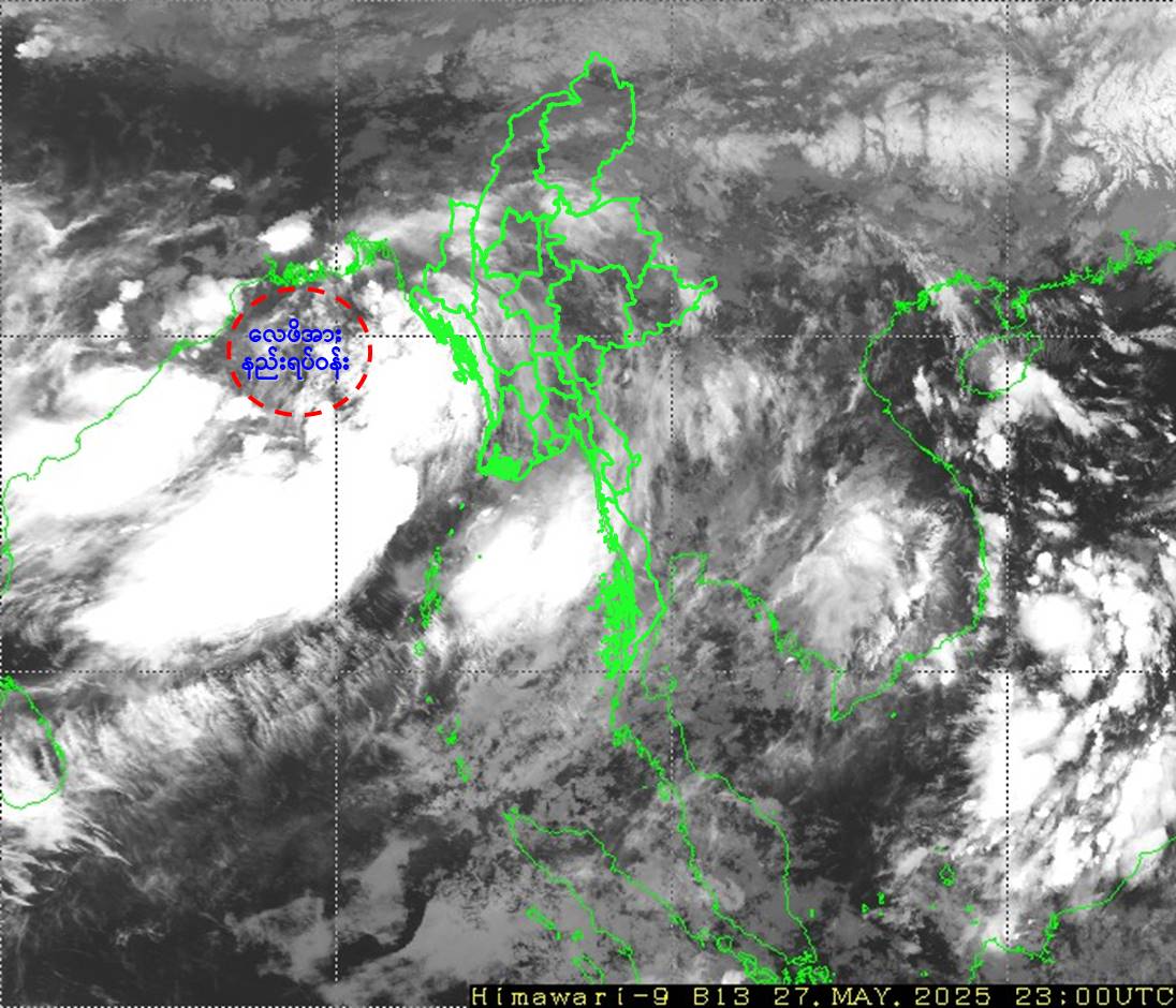 ၂၀၂၅ ခုနှစ်၊ မေလ (၂၈) ရက်နေ့ မြန်မာစံတော်ချိန် (၀၇:၀၀) နာရီအချိန်တွင် မိုးလေဝသနှင့် ဇလဗေဒညွှန်ကြားမှုဦးစီးဌာနမှ “လေဖိအားနည်းရပ်ဝန်းအခြေအနေ” ကို အောက်ပါအတိုင်း ထုတ်ပြန်ထားပါသည်-