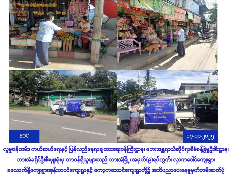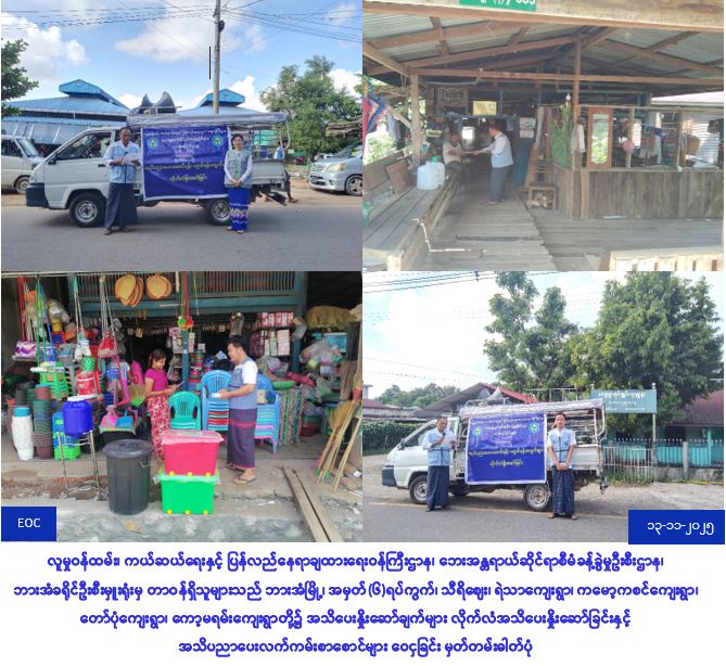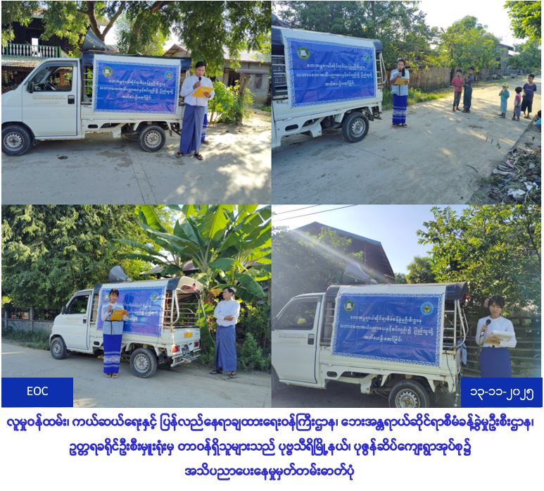 ဘားအံမြို့၊ အမှတ် (၆)ရပ်ကွက်၊ သီရိဈေး၊ ရဲသာကျေးရွာ၊ ကမော့ကစင်ကျေးရွာ၊ တော်ပုံကျေးရွာ၊ ကော့မရမ်းကျေးရွာတို့၌သဘာဝဘေး အသိပညာပေးလိုက်လံနှိုးဆော်မှုသတင်း