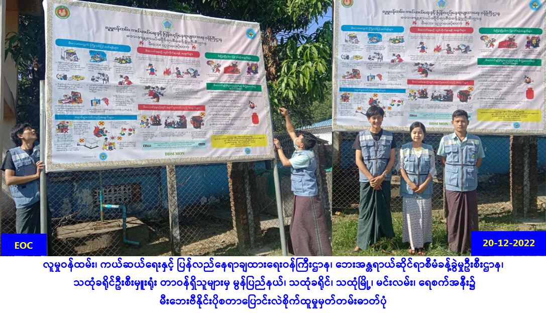 မွန်ပြည်နယ်၊ သထုံခရိုင်၊ သထုံမြို့၊ မင်းလမ်း၊ ရေစက်အနီး၌ မီးဘေးဗီနိုင်းပိုစတာပြောင်းလဲစိုက်ထူမှု သတင်း
