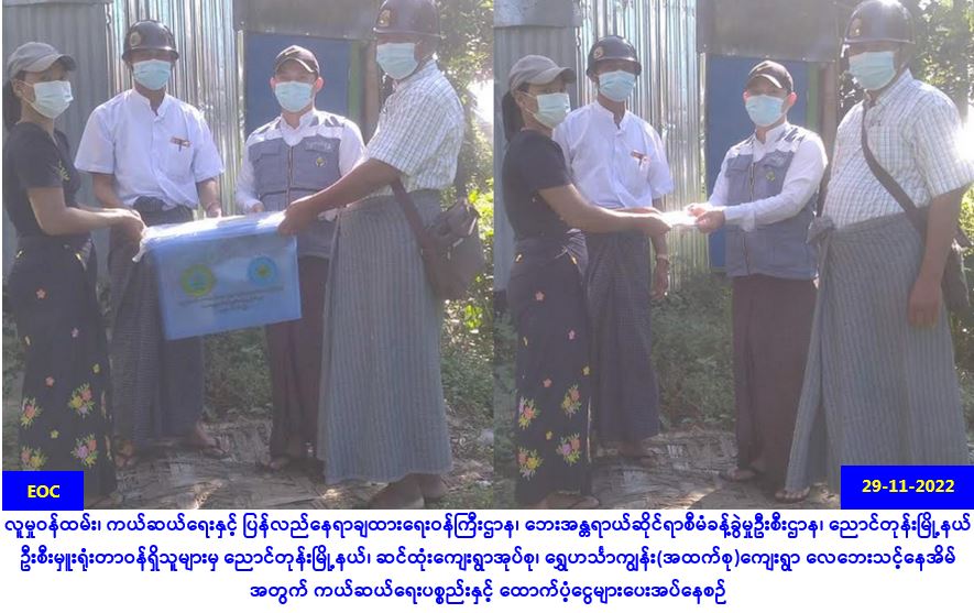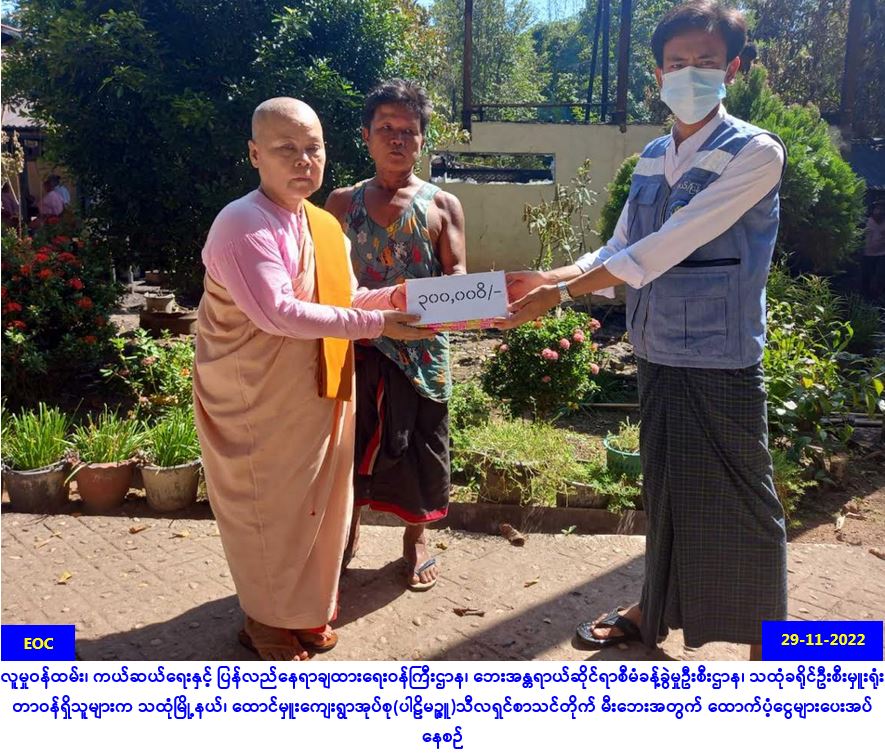 ကျိုက်မရောမြို့နယ်မှ နယ်မြေလုံခြုံရေးအရ မုဒုံမြို့နယ်အတွင်းရှိ ရပ်ကွက်/ကျေးရွာဘုန်းကြီးကျောင်း နှင့် နေအိမ်များသို့ ရောက်ရှိလာသော တိုက်ပွဲရှောင် ပြည်သူများအတွက် ထောက်ပံ့ငွေ ပေးအပ်မှုသတင်း