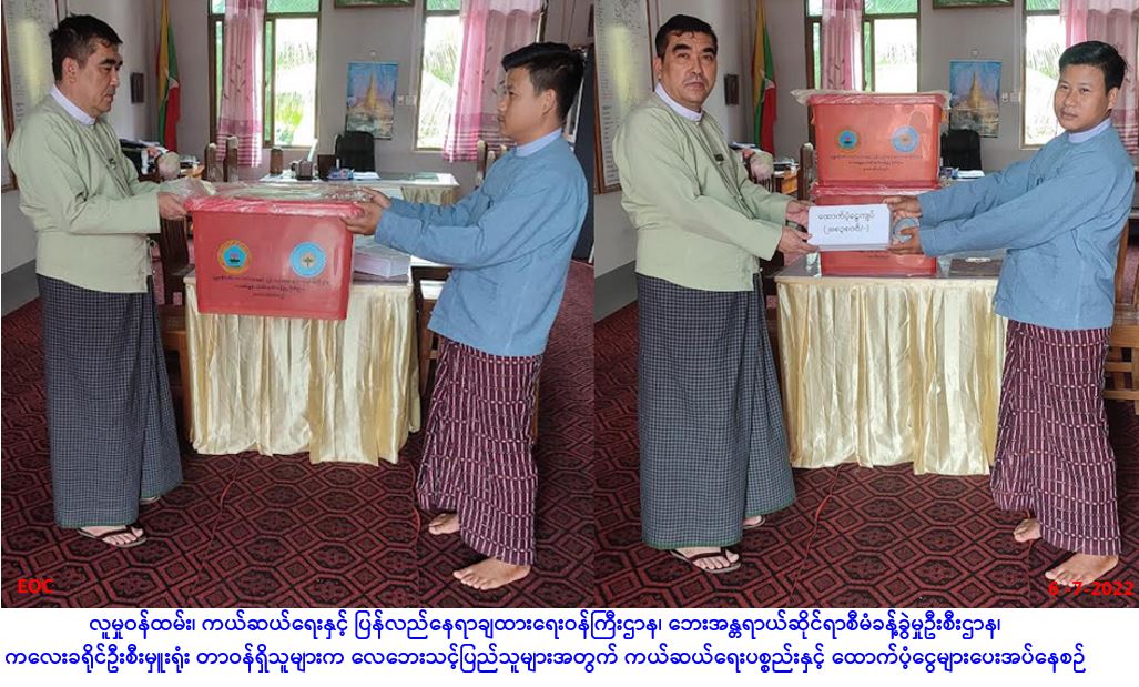 လူမှု၀န်ထမ်း၊ ကယ်ဆယ်ရေးနှင့် ပြန်လည်နေရာချထားရေး၀န်ကြီးဌာန၊ ဘေးအန္တရာယ်ဆိုင်ရာ စီမံခန့်ခွဲမှု ဦးစီးဌာန၊ ကလေးခရိုင်ဦးစီးမှူးရုံးမှ တာဝန်ရှိသူများသည် ကလေးခရိုင်၊ ကလေးမြို့နယ်၊ အင်းကျွန်းကျေးရွာ၌ (၁၃-၆-၂၀၂၂)ရက်နေ့တွင် ဖြစ်ပွားခဲ့သောလေဘေးကြောင့် လေဘေးသင့် အိမ်ထောင်စု (၈၀)၊ လူဦးရေ (၂၇၈)ဦးတို့အတွက် ဆန်ရိက္ခာဖိုးငွေ (၇) ရက်စာ (၅၈၃,၈၀၀/-) ကျပ်နှင့် အိမ်ဆောက်ပစ္စည်းဖိုး ထောက်ပံ့ငွေ (၂,၃၀၀,၀၀၀/-) စုစုပေါင်းထောက်ပံငွေ (၂,၈၈၃,၈၀၀/-) ကျပ်နှင့် ကယ်ဆယ်ရေးပစ္စည်း (၁၇)မျိုး (၂) အိမ်ထောင်စာတို့အား (၆-၇-၂၀၂၂) ရက်နေ့၊ (၁၃း၀၀) နာရီ အချိန်တွင် ကလေးမြို့နယ် အထွေထွေအုပ်ချုပ်ရေးမှူးခန်းမ၌ … Read more