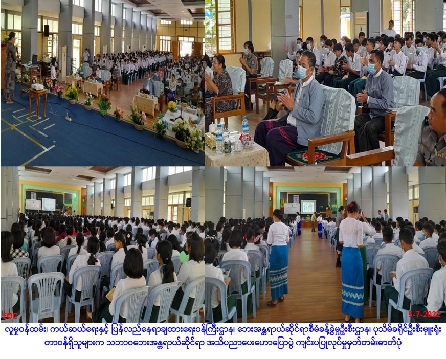 လူမှု၀န်ထမ်း၊ ကယ်ဆယ်ရေးနှင့် ပြန်လည်နေရာချထားရေး၀န်ကြီးဌာန၊ဘေးအန္တရာယ်ဆိုင်ရာစီမံခန့်ခွဲမှု ဦးစီးဌာန၏ Quick – Wing Project အစီအစဥ်အရ ပုသိမ်ခရိုင်ဦးစီးမှူးရုံးမှ တာ၀န်ရှိသူများသည် ဘေးအန္တရာယ်ဆိုင်ရာစီမံခန့်ခွဲမှုဦးစီးဌာန၊ ဧရာ၀တီတိုင်းဒေသကြီးဦးစီးမှူးရုံး၏ ကြီးကြပ်လမ်းညွှန်မှုဖြင့် ဧရာ၀တီတိုင်းဒေသကြီး၊ လူမှု၀န်ထမ်းဦးစီးမှူးရုံး၊ မူးယစ်တိုက်ဖျက်ရေးအဖွဲ့နှင့် လူကုန်ကူးမှုကာကွယ် တားဆီးရေးအဖွဲ့တို့မှ တာ၀န်ရှိသူများနှင့်ပူးပေါင်း၍ (၅-၇-၂၀၂၂)ရက်နေ့တွင် ပုသိမ်မြို့၊ အ.ထ.က(၁) အခြေခံပညာအထက်တန်းကျောင်းရှိ “ရတနာတန်ဆောင်” ခန်းမ၌ (၈၊၉၊၁၀)တန်းမှ ကျောင်းသား/သူ (၃၅၀)ဦးခန့်အား ဌာနအလိုက် သက်ဆိုင်ရာခေါင်းစဥ်အသီးသီးဖြင့် အသိပညာပေးဆွေးနွေးဟောပြော ခဲ့ပြီး လက်သန့်ဆေးရည်၊ Mask၊ အသိပညာပေးလက်ကမ်းစာစောင်များနှင့် ဗီနိုင်းပိုစတာများ ဖြန့်ဝေပေးအပ်ခဲ့ပါကြောင်း သတင်းရရှိပါသည်။ #ar … Read more