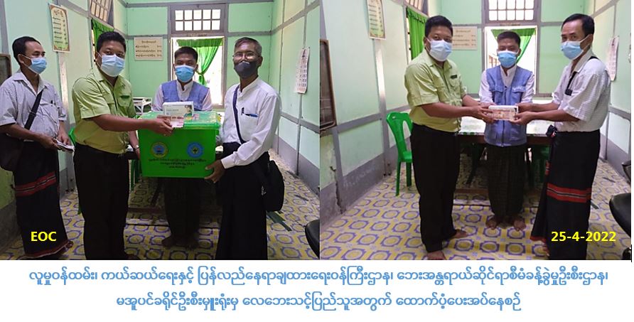 လူမှုဝန်ထမ်း၊ ကယ်ဆယ်ရေးနှင့် ပြန်လည်နေရာချထားရေးဝန်ကြီးဌာန၊ ဘေးအန္တရာယ်ဆိုင်ရာစီမံခန့်ခွဲမှု ဦးစီးဌာန၊ မအူပင်ခရိုင်ဦးစီးမှူးရုံးမှ တာဝန်ရှိသူများသည် မအူပင်မြို့နယ်၊ တော်တလုပ်ကျးရွာအုပ်စု၊ သုံးခွဆိုင်ကျေးရွာ၌ (၂၄-၄-၂၀၂၂)ရက်နေ့တွင် ဖြစ်ပွားခဲ့သော လေပြင်းဘေးကြောင့် ဘေးသင့်ခဲ့သည့် ပြိုကျနေအိမ် (၃)လုံး၊ အိမ်ထောင်စု(၃)စုမှ လူဦးရေ (၉)ဦးအတွက် ကယ်ဆယ်ရေးပစ္စည်း (၁၈)မျိုးပါ( ၃) ပုံးနှင့် Surgical Mask (၁၈)ခု အိမ်ဆောက်ပစ္စည်းဖိုးထောက်ပံ့ငွေ (၃၀၀,၀၀၀/-)၊ ဆန်ရိက္ခာဖိုးထောက်ပံ့ ငွေ (၁၈,၉၀၀/-) ကျပ်၊ စုစုပေါင်းထောက်ပံ့ငွေ (၃၁၈,၉၀၀/-) ကျပ်တို့အား မြို့နယ် အထွေထွေ အုပ်ချုပ်ရေးဦးစီးဌာနမှ တာဝန်ရှိသူများနှင့်အတူ (၂၅-၄-၂၀၂၂) … Read more