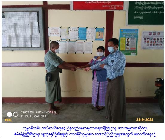 လူမှုဝန်ထမ်း၊ ကယ်ဆယ်ရေးနှင့် ပြန်လည်နေရာချထားရေးဝန်ကြီးဌာန၊ ဘေးအန္တရာယ်ဆိုင်ရာစီမံခန့်ခွဲမှုဦးစီးဌာန၊ ရွှေဘိုခရိုင်ဦးစီးမှူးရုံးမှ တာဝန်ရှိသူများသည် (၂၀-၉-၂၀၂၁)ရက်နေ့တွင် ရွှေဘိုခရိုင်၊ ဝက်လက်မြိုနယ်၊ ရှိမက္ကားကျေးရွာ၌ မိုးသည်းထန်စွာရွာသွန်းပြီး သစ်ပင်ပြိုလဲ၍ အမိုးလန်ပျက်စီးခဲ့သော အိမ်ထောင်စု(၁)စုမှ လူဦးရေ(၅)ဦးအတွက် ဆန်ရိက္ခာဖိုးထောက်ပံ့ငွေ(၁၀၅၀ဝိ/-)၊ အိမ်ဆောက်ပစ္စည်းဖိုးထောက်ပံ့ငွေ(၁၅၀၀ဝိ/-)၊ စုစုပေါင်းထောက်ပံ့ငွေ(၂၅၅၀ဝိ/-)အား (၂၁-၉-၂၀၂၁)ရက်နေ့ (၁၁း၀၀)အချိန်တွင် ထောက်ပံ့ပေးအပ်ခဲ့ပါကြောင်း သတင်းရရှိပါသည်။ #otr #sgg_sep_2021 Source: ရွှေဘိုခရိုင်ဦးစီးမှူးရုံး(ဘစမ)