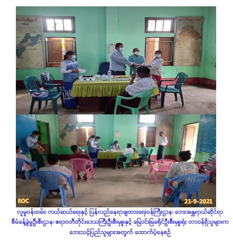 လူမှုဝန်ထမ်း၊ ကယ်ဆယ်ရေးနှင့် ပြန်လည်နေရာချထားရေးဝန်ကြီးဌာန၊ ဘေးအန္တရာယ်ဆိုင်ရာစီမံခန့်ခွဲမှု ဦးစီးဌာန၊ ပဲခူးတိုင်းဒေသကြီး၊ သာယာဝတီခရိုင်၊ မိုးညိုမြို့နယ်ဦးစီးမှူးရုံးမှ ဝန်ထမ်းများသည် (၂၁-၉-၂၀၂၁) ရက်နေ့၊ (၀၈း၀၀) အချိန်မှ (၁၁း၃၀) အချိန်အထိမော်တော်ယာဥ်ဖြင့်လှည့်လည်၍မိုးညိုမြို့နယ်၊ ညောင်ဝိုင်းကျေးရွာ၊ ငှက်ပျောတုံးကျေးရွာ၊ ဆင်ကျွန်းကျေးရွာ၊ ကျားကျွန်းကျေးရွာ၊ မိုးသီတာကျေးရွာ၊ ပေါက်ကုန်းကျေး ရွာ၊ ရှောက်ပင်ကွင်းကျေးရွာနှင့်ဗောဓိကုန်းကျေးရွာတို့တွင် COVID-၁၉ ရောဂါ ကူးစက်ပြန့်ပွားမှုမရှိစေရေး လိုက်နာဆောင်ရွက်ရန်အချက်များအားလည်းကောင်း၊ သဘာဝဘေး အန္တရာယ်များနှင့်ပတ်သက်၍ ဆောင်ရန်/ရှောင်ရန်အချက်များအားလည်းကောင်း မြို့နယ်ပြန်/ဆက်နှင့် ပူးပေါင်း၍ အသိပညာပေးဆော်ဩခဲ့ပြီး ပြည်သူလူထုအား Surgical Mask နှင့် လက်ကမ်းစာစောင်များဖြန့်ဝေပေးခဲ့ပါကြောင်း သတင်းရရှိပါသည်။ #ar … Read more