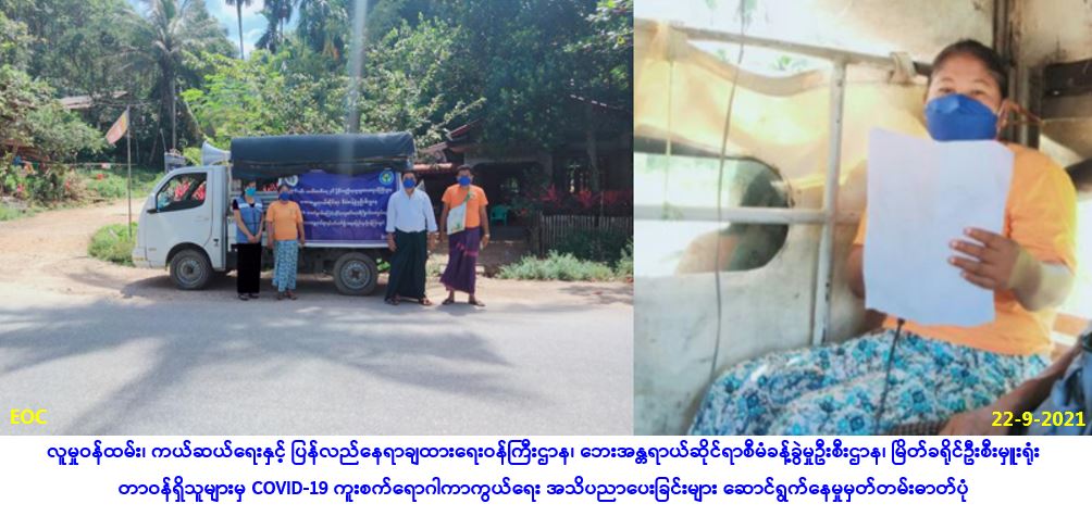 Covid-19 ကူးစက်ရောဂါနှင့် သဘာဝဘေးအန္တရာယ်ဆိုင်ရာအသိပညာပေးဆောင်ရွက်မှုသတင်း
