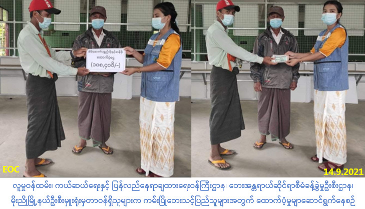 လူမှုဝန်ထမ်း၊ ကယ်ဆယ်ရေးနှင့်ပြန်လည်နေရာချထားရေးဝန်ကြီးဌာန၊ ဘေးအန္တရာယ်ဆိုင်ရာစီမံခန့်ခွဲမှုဦးစီးဌာန၊ မိုးညိုမြို့နယ်ဦးစီးမှူးရုံးမှတာဝန်ရှိသူများသည် (၈-၉-၂၀၂၁)ရက်နေ့၌ ပဲခူးတိုင်းဒေသကြီး၊ သာယာဝတီခရိုင်၊ မိုးညိုမြို့နယ်၊ အိုးဘိုကျွန်းကျေးရွာအုပ်စု၊ အိုးဘိုကျွန်းကျေးရွာ ရွှေသောင်ပိုင်းတွင်ဖြစ်ပွားခဲ့သော ကမ်းပြိုဘေးမှ ကြိုတင်ပြောင်းရွှေ့နေအိမ်(၁)လုံး အတွက် အိမ်ဆောက်ပစ္စည်းဖိုးထောက်ပံ့ငွေ(၁၀၀,၀၀၀/-)ကျပ်နှင့် အိမ်ထောင်စု(၁)စုရှိ လူဦးရေ (၈)ဦးအတွက် ဆန်ရိက္ခာ(၇)ရက်စာဖိုးထောက်ပံ့ငွေ(၈၄၀၀/-)ကျပ်၊ စုစုပေါင်းထောက်ပံ့ငွေ (၁၀၈,၄၀၀/-)ကျပ်အား (၁၄-၉-၂၀၂၁)ရက်နေ့၊ (၁၁း၀၀)နာရီအချိန်တွင် မြို့နယ်အထွေထွေ အုပ်ချုပ်ရေးဦးစီးဌာန၊ စုပေါင်းရုံးရှိ(oss)ရုံးခန်း၌ မြို့နယ်စီမံအုပ်ချုပ်ရေးအဖွဲ့မှတာဝန်ရှိသူများ၊ ကျေးရွာအုပ်ချုပ်ရေး၊ ရပ်ကျေးစာရေးများနှင့်အတူ ဘေးသင့်ပြည်သူများလက်ဝယ်အရောက် ထောက်ပံ့ပေးအပ်ခဲ့ပါကြောင်း သတင်းရရှိပါသည်။ #ha_rbe #bgo_sep2021 Source: မိုးညိုမြို့နယ်ဦးစီးမှူးရုံး (ဘစမ)