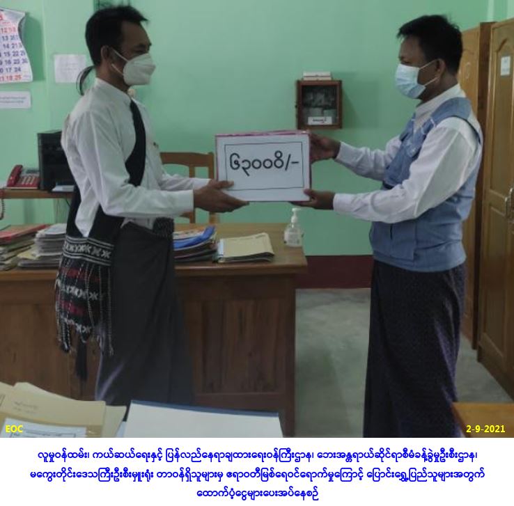 လူမှုဝန်ထမ်း၊ ကယ်ဆယ်ရေးနှင့် ပြန်လည်နေရာချထားရေးဝန်ကြီးဌာန၊ ဘေးအန္တရာယ်ဆိုင်ရာ စီမံခန့်ခွဲမှုဦးစီးဌာန၊ မကွေးတိုင်းဒေသကြီးဦးစီးမှူးရုံးမှ တာဝန်ရှိသူများသည် မကွေးခရိုင်၊ မကွေးမြို့နယ်၊ မြေနုကျေးရွာအုပ်စု၊ မြေနုကျေးရွာတွင် ( ၁-၉-၂၀၂၁) ရက်နေ့၌ ဧရာဝတီမြစ်ရေဝင်ရောက်မှုကြောင့် ရေဘေးသင့်အိမ်ခြေ (၈)လုံး၊ အိမ်ထောင်စု(၈)စု၊ လူဦးရေ (၃၀) ဦးတို့ ပြောင်းရွှေ့မှုအတွက် ဆန်ရိက္ခာဖိုး ထောက်ပံ့ငွေ (၆၃၀၀၀/-) တို့ကျပ်တို့အား (၂-၉-၂၀၂၁)ရက်နေ့ (၁၁း၀၀)နာရီအချိန်တွင် ထောက်ပံ့ပေး အပ်ခဲ့ကြောင်း သတင်းရရှိပါသည်။ Source: မကွေးတိုင်းဒေသကြီးဦးစီးမှူးရုံး(ဘစမ) #ha_fld #mgy_sep2021