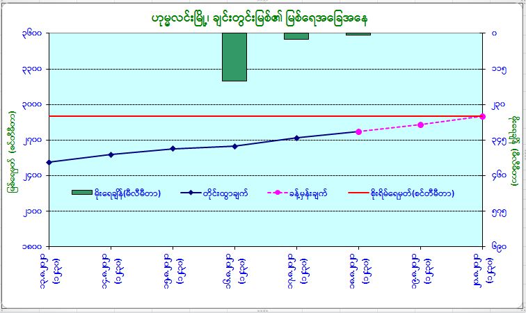 ========================================= (၂၀၂၁ ခုနှစ်၊ ဩဂုတ်လ (၁၈)ရက်၊ (၁၄:၀၀)နာရီအချိန် ထုတ်ပြန်ချက်) ———————————————————————– ယနေ့မြန်မာစံတော်ချိန် (၁၃:၃၀)နာရီအချိန် တိုင်းထွာချက်အရ ချင်းတွင်းမြစ်ရေသည် ဟုမ္မလင်းမြို့တွင် ယင်းမြို့၏ စိုးရိမ်ရေမှတ်အောက် (၄)ပေခွဲခန့်တွင် ရောက်ရှိနေပါသည်။ အဆိုပါမြစ်ရေသည် နောက်(၂)ရက်အတွင်း ယင်းမြို့၏ စိုးရိမ်ရေမှတ်သို့ ရောက်ရှိနိုင်ပါသည်။ ~~~~~~~~~~~~~~~~~~~~~~~~~~~~~~~~~~~~~~~~~ သို့ဖြစ်ပါ၍ ဟုမ္မလင်းမြို့နယ်အတွင်းရှိ မြစ်ကမ်းအနီးနှင့် မြေနိမ့်ပိုင်းနေထိုင်သူများအနေဖြင့် အထူးသတိပြုနေထိုင်ကြပါရန် အကြံပြုအပ်ပါသည်။