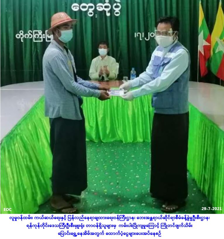 လူမှုဝန်ထမ်း၊ ကယ်ဆယ်ရေးနှင့် ပြန်လည်နေရာချထားရေးဝန်ကြီးဌာန၊ ဘေးအန္တရာယ်ဆိုင်ရာ စီမံခန့်ခွဲမှုဦးစီးဌာန၊ ရန်ကုန်တိုင်းဒေသကြီးဦးစီးမှူးရုံးမှ တာဝန်ရှိသူများသည် ရန်ကုန် မြောက်ပိုင်းခရိုင်၊ တိုက်ကြီးမြို့နယ်၊ ဥက္ကံမြို့၊ ကျန်စစ်သားရပ်ကွက်တွင် (၂၇-၇-၂၀၂၁)ရက်နေ့၌ လေပြင်းတိုက်ခတ်မှုကြောင့် လေဘေးဖြစ်ပွားခဲ့ရာ ပြိုကျအိမ်ခြေ (၁)လုံး၊ တစ်စိတ်တစ်ပိုင်း ပျက်စီးနေအိမ် (၄) လုံး၊ အိမ်ထောင်စု (၅)စုအတွက် အိမ်ဆောက်ပစ္စည်းဖိုး ထောက်ပံ့ငွေ (၃၀၀,၀၀ဝ/-)ကျပ်နှင့် ဆန်ရိက္ခာဖိုးထောက်ပံ့ငွေ (၃၇,၈ဝဝ/-) ကျပ်တို့အား (၂၉-၇-၂၀၂၁) ရက် နေ့တွင် သွားရောက်ထောက်ပံ့ပေးအပ်ခဲ့ကြောင်း သတင်းရရှိပါသည်။ #ha_sgw #ygn_jul2021 Source: ရန်ကုန်တိုင်းဒေသကြီးဦးစီးမှူးရုံး (ဘစမ)