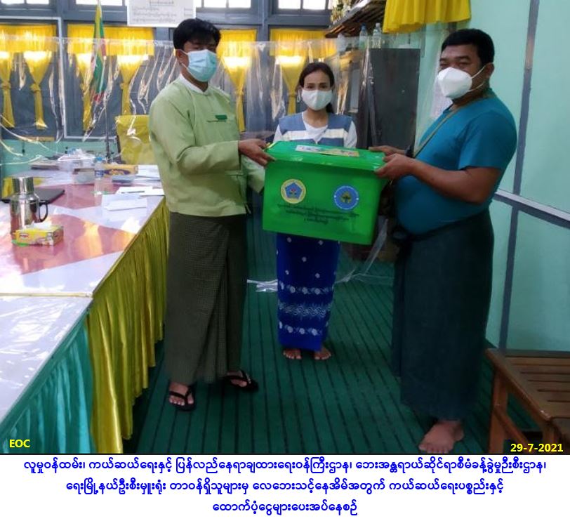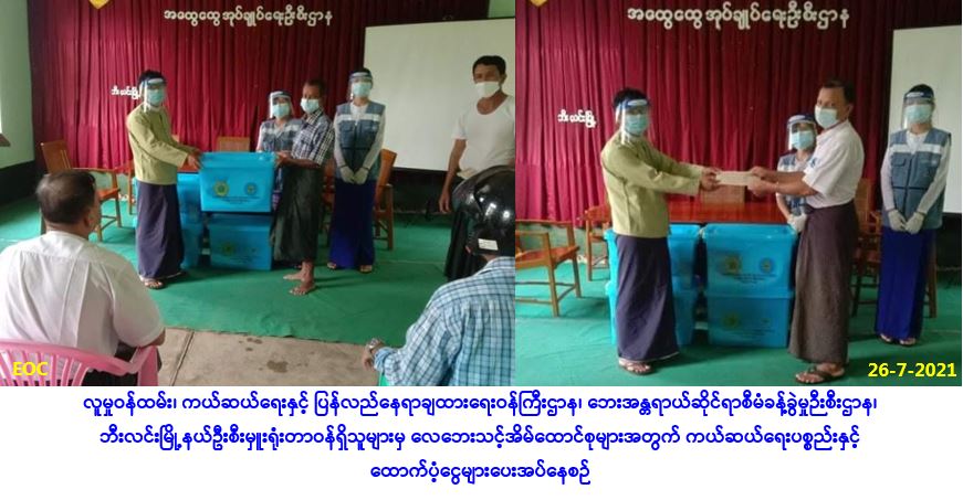 လူမှုဝန်ထမ်း၊ ကယ်ဆယ်ရေးနှင့် ပြန်လည်နေရာချထားရေးဝန်ကြီးဌာန၊ ဘေးအန္တရာယ်ဆိုင်ရာ စီမံခန့်ခွဲမှုဉီးစီးဌာန၊ ရေးမြို့နယ်ဦးစီးမှူးရုံးမှ တာဝန်ရှိသူများသည် မွန်ပြည်နယ်၊ ရေးမြို့နယ်၊ ကျောင်းရွာကျေးရွာအုပ်စု၊ ဖားကြီးကျေးရွာ၌ (၂၆-၇-၂၀၂၁)ရက်နေ့တွင် လေပြင်းတိုက်ခတ်မှု ကြောင့် ပြိုကျပျက်စီးခဲ့သည့် တောတိုင်၊ ပျဥ်ခင်း၊ ဖက်မိုး၊ ဝါးထရံကာ လူနေအိမ်(၁)လုံးမှ အိမ်ထောင်စု (၁)စုအတွက် ကယ်ဆယ်ရေးပစ္စည်း (၁၆)မျိုး (၁)အိမ်ထောင်စာ၊ အိမ်ဆောက် ပစ္စည်းဖိုးငွေ (၁၀၀,၀၀၀/-)ကျပ်နှင့် ဘေးသင့်လူဦးရေ (၆) ဦးအတွက် ဆန်ရိက္ခာဖိုးငွေ (၁၂,၆၀၀/-) ကျပ်၊ စုစုပေါင်း (၁၁၂,၆၀၀/-)ကျပ်တို့အား (၂၉-၇-၂၀၂၁)ရက်နေ့ (၁၃း၀၀)နာရီ အချိန်တွင် ထောက်ပံ့ပေးအပ်ခဲ့ကြောင်း … Read more
