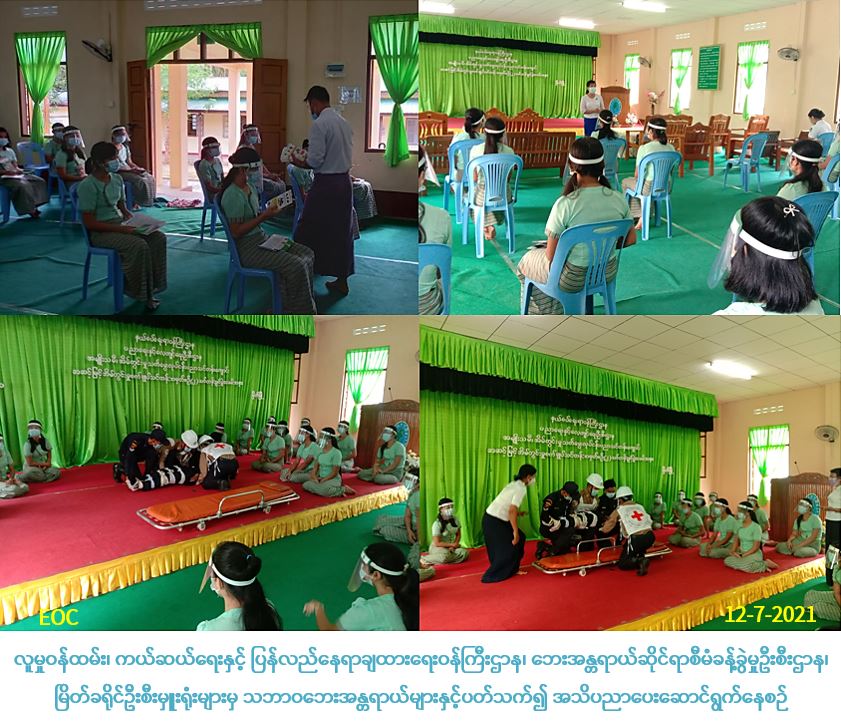 လူမှုဝန်ထမ်း၊ ကယ်ဆယ်ရေးနှင့် ပြန်လည်နေရာချထားရေးဝန်ကြီးဌာန၊ ဘေးအန္တရာယ်ဆိုင်ရာစီမံခန့်ခွဲမှုဦစီးဌာန၊ မြိတ်ခရိုင်ဦးစီးမှူးရုံးမှ တာဝန်ရှိသူများသည် (၁၂-၇-၂၀၂၁) ရက်နေ့တွင် နယ်စပ်ရေးရာဝန်ကြီးဌာန၊ ပညာရေးနှင့်လေ့ကျင့်ရေးဦးစီးဌာန၊ အမျိုးသမီးသက်မွေးမှုလေ့ကျင့်ရေးသင်တန်းကျောင်းမှ ဦးစီးပြုလုပ်သော သဘာဝဘေးအန္တရာယ် ဇာတ်တိုက်လေ့ကျင့်ခန်းတွင် ဆရာမ/ကျောင်းသူ(၃၀)ဦးခန့် ပူးပေါင်းပါဝင်၍ မီးဘေး၊ ရေဘေး၊ လေဘေး၊ မိုးကြိုးဘေး၊ ငလျင်ဘေး၊ ဆူနာမီဘေး၊မြေပြိုဘေး၊ မုန်တိုင်းဘေးများနှင့်ပတ်သက်၍ ဟောပြောခြင်းများပြုလုပ်ခြင်း၊ မီးသတ်ဦးစီးဌာနမှ မီးဘေးနှင့် ပတ်သတ်၍သရုပ်ပြဆောင်ရွက်ခြင်း၊ ကြက်ခြေနီအသင်းမှ ရှေးဦးသူနာပြုစုခြင်းများကို သရုပ်ပြဆောင်ရွက်ခြင်းတို့ကို ပူပေါင်း၍ဆောင်ရွက်ခဲ့ပါကြောင်း သတင်းရရှိပါသည်။ Source: မြိတ်ခရိုင်ဦးစီးမှူးရုံး (ဘစမ) #ar #tny_jul2021