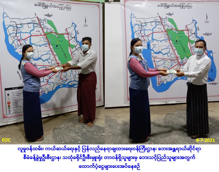 လူမှုဝန်ထမ်း၊ ကယ်ဆယ်ရေးနှင့် ပြန်လည်နေရာချထားရေးဝန်ကြီးဌာန၊ ဘေးအန္တရာယ်ဆိုင်ရာ စီမံခန့်ခွဲမှုဦးစီးဌာန၊ သထုံခရိုင်ဦးစီးမှူးရုံးမှ တာဝန်ရှိသူများသည် မွန်ပြည်နယ်၊ သထုံခရိုင်၊ ပေါင်မြို့နယ်၊ လက်ပံကျွန်းကျေးရွာအုပ်စု၊ ကုလားစုကျေးရွာ၌ (၁-၇-၂၀၂၁) ရက်နေ့ (၁၄:၀၀) နာရီအချိန်ခန့်တွင် ရေတိုက်စားပြီး ကမ်းပါးပြိုကျမှုကြောင့် ကြိုတင်ရွှေ့ပြောင်းခဲ့ရသည့် လူနေအိမ် (၈) လုံးအတွက် အိမ်ဆောက်ပစ္စည်းဖိုးထောက်ပံ့ငွေ (၈၀၀,၀၀၀/-) ကျပ်နှင့် လူဦးရေ စုစုပေါင်း (၂၆)ဦးတို့အတွက် (၇) ရက်စာ ဆန်ရိက္ခာဖိုးထောက်ပံ့ငွေ (၅၄,၆၀၀/-) ကျပ်၊ စုစုပေါင်း ထောက်ပံ့ငွေ (၈၅၄,၆၀၀/-) ကျပ်တို့အားလည်းကောင်း၊ ပေါင်မြို့နယ်၊ ဖြူဘကျေးရွာအုပ်စု၌ (၃-၇-၂၀၂၁) … Read more