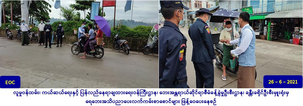 လူမှုဝန်ထမ်း၊ ကယ်ဆယ်ရေးနှင့်ပြန်လည်နေရာချထားရေးဝန်ကြီးဌာန၊ ဘေးအန္တရာယ်ဆိုင်ရာစီမံခန့်ခွဲမှုဦးစီးဌာန၊ ခန္တီးခရိုင် ဦးစီးမှူးရုံးမှ တာဝန်ရှိသူများသည် (၂၆-၆-၂၀၂၁)ရက်နေ့ (၀၇:၃၀)နာရီအချိန်တွင် ခန္တီးမြို့၊ ကမ်းနားလမ်းနှင့် ဈေးလမ်းဆုံနေရာ၌ မြို့နယ်အဆင့် ဌာနဆိုင်ရာများနှင့်အတူ Mask Campaign ပြုလုပ်ရာတွင် ပူးပေါင်းပါဝင်၍ ခန္တီးမြို့နယ်အတွင်း မိုးရာသီရောက်ရှိလာပြီဖြစ်သဖြင့် ပြည်သူများရေဘေးအန္တရာယ်မှ ကြိုတင်ပြင်ဆင်နိုင်ရေးအတွက် ရေဘေးအသိပညာပေး လက်ကမ်းစာစောင် (၁၀၀)ခုအား ဖြန့်ဝေပေးခဲ့ကြောင်း သတင်းရရှိပါသည်။ #ar_fld #sgg_jun2021 Source: ခန္တီးခရိုင်ဦးစီးမှူးရုံး (ဘစမ)