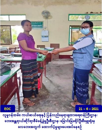 လူမှုဝန်ထမ်း၊ ကယ်ဆယ်ရေးနှင့် ပြန်လည်နေရာချထားရေးဝန်ကြီးဌာန၊ ဘေးအန္တရာယ်ဆိုင်ရာစီမံခန့်ခွဲမှုဦးစီးဌာန၊ ရေကြည်မြို့နယ်ဦးစီးမှူးရုံးမှ တာဝန်ရှိသူများသည် ရေကြည်မြို့နယ်၊ ကညင်ငူကျေးရွာအုပ်စု၊ ကညင်ငူကျေးရွာတွင် (၁၆-၆-၂၀၂၁) ရက်နေ့တွင် လေဘေးကြောင့် ပြိုကျပျက်စီးနေအိမ်(၂)လုံးအတွက် အိမ်ဆောက်ပစ္စည်းဖိုးရန်ပုံငွေ (၃၀၀,၀၀ဝ)ကျပ်၊ အိမ်ထောင်စု(၂)စုမှ စုစုပေါင်းလူဦးရေ(၄)ဦးအတွက် ဆန်ရိက္ခာ (၇) ရက်စာ ရန်ပုံငွေ (၈,၄၀၀)ကျပ်၊ စုစုပေါင်းကယ်ဆယ်ရေးရန်ပုံငွေ (၃၀၈,၄၀ဝ) ကျပ်နှင့်ကယ်ဆယ်ရေးပစ္စည်း(၁၇)မျိုးပါ (၂) အိမ်ထောင်စာ (၉၂,၀၇၂) ကျပ်အား (၂၁-၆-၂၀၂၁) ရက်နေ့ (၁၅:၄၀)နာရီအချိန် တာဝန်ရှိသူများရှေ့မှောက်၌ ဘေးသင့်ပြည်သူများ လက်ဝယ်အရောက် ထောက်ပံ့ပေးအပ်ခဲ့ပါကြောင်း သတင်းရရှိပါသည်။ Source: … Read more