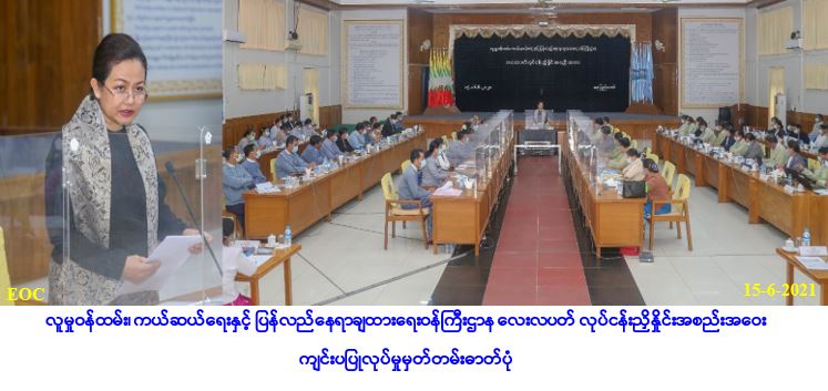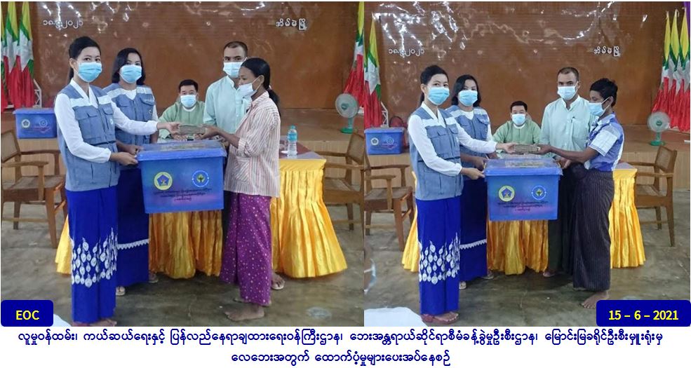 လူမှုဝန်ထမ်း၊ ကယ်ဆယ်ရေးနှင့် ပြန်လည်နေရာချထားရေးဝန်ကြီးဌာန၊ ဘေးအန္တရာယ်ဆိုင်ရာစီမံခန့်ခွဲမှုဦးစီးဌာန၊ မြောက်ဦးခရိုင်ဦးစီးမှူးရုံးမှ တာဝန်ရှိသူများသည် (၁-၆-၂၀၂၁) ရက်နေ့တွင် လေပြင်းတိုက်ခတ်မှုကြောင့် မြောက်ဦးမြို့နယ်၊ ထမ္မရာဇ်ရပ်ကွက်၊ ကယ်ဆယ်ရေးရပ်၊ လူနေအိမ်(တစ်စိတ်တစ်ပိုင်းပျက်စီး)(၅)လုံးအတွက် အိမ်ဆောက်ပစ္စည်းဖိုးထောက်ပံ့ငွေ (၂၃၀,၀၀ဝ) ကျပ်၊ အိမ်ထောင်စု (၅) စု၊ လူဦးရေ(၂၁)ဦးအတွက် ဆန်ရိက္ခာဖိုးငွေ (၄၄,၁ဝဝ) ကျပ်၊ အိမ်ဆောက်ပစ္စည်းဖိုးငွေ (၂၇၄,၁ဝဝ) ကျပ်တို့ကို (၁၆-၆-၂၀၂၁) ရက်နေ့ (၁၀:၀၀) နာရိအချိန်တွင် မြောက်ဦးမြို့နယ်အထွေထွေအုပ်ချုပ်ရေးစီးဌာန အစည်းအဝေးခန်းမ၌ မြို့နယ်အုပ်ချုပ်ရေးမှူး၊ ထမ္မရာဇ်ရပ်ကွက်အုပ်ချုပ်ရေးမှူး တို့နှင့်အတူ လေဘေးသင့်ပြည်သူများထံသို့ လက်ဝယ်အရောက် ထောက်ပံ့ပေးအပ်ခဲ့ပါကြောင်း သတင်းရရှိပါသည်။ Source: … Read more