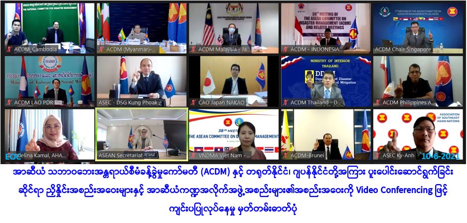 အာဆီယံ သဘာဝဘေးအန္တရာယ်စီမံခန့်ခွဲမှုကော်မတီ (ACDM) နှင့် တရုတ်နိုင်ငံ၊ ဂျပန်နိုင်ငံတို့အကြား ပူးပေါင်းဆောင်ရွက်ခြင်းဆိုင်ရာ ညှိနှိုင်းအစည်းအဝေးများနှင့် အာဆီယံကဏ္ဍအလိုက်အဖွဲ့အစည်းများ ၏အစည်းအဝေးသို့ တက်ရောက်