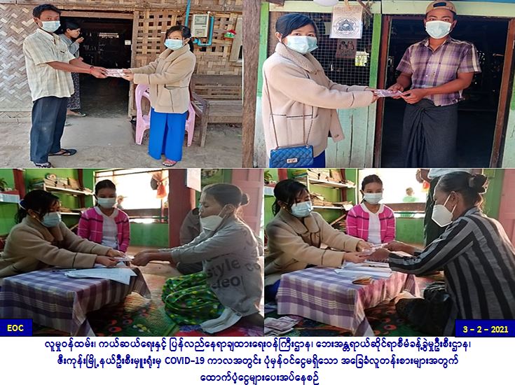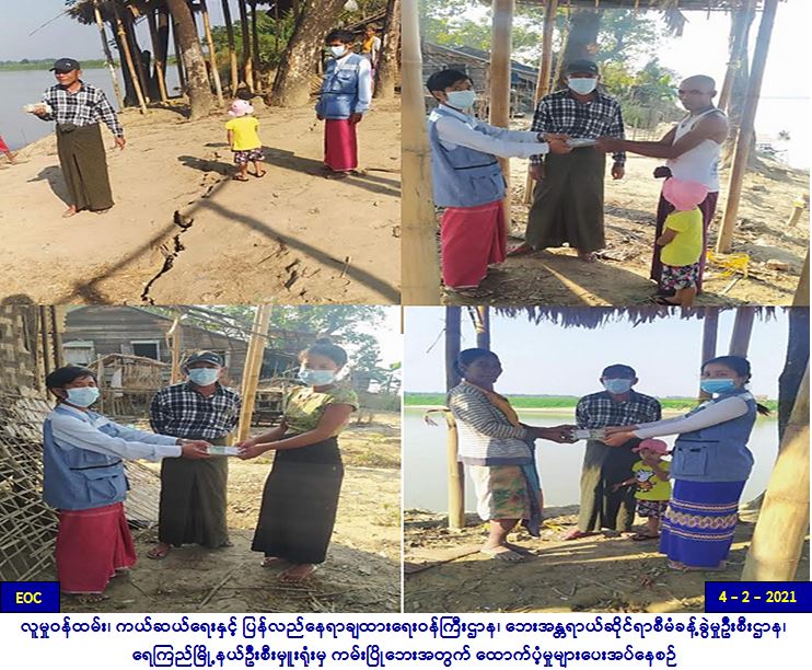 လူမှုဝန်ထမ်း၊ ကယ်ဆယ်ရေးနှင့်ပြန်လည်နေရာချထားရေး ဝန်ကြီးဌာန၊ ဘေးအန္တရာယ်ဆိုင်ရာစီမံခန့်ခွဲမှုဦးစီးဌာန၊ ဇီးကုန်း မြို့နယ်ဦးစီးမှူးရုံးမှ တာဝန်ရှိသူများသည် (၃-၂-၂၀၂၁) ရက်နေ့၌ ပဲခူးတိုင်းဒေသကြီး၊ သာယာဝတီခရိုင်၊ ဇီးကုန်းမြို့နယ်၊ သရက်တပင်ကျေးရွာအုပ်စု၊ ဝက်ကော်အောက်ရှမ်းစုကျေးရွာ၊ ဝက်ကော်အထက်ရှမ်းစုကျေးရွာ၊ ရှားဖြူကုန်းကျေးရွာ၊ အုတ်ဖိုစု ကျေးရွာ၊ ဆင်ကုန်တိုင်ကျေးရွာ၊ သစ်မျှောလေးကျေးရွာနှင့် သစ်မျှောကြီးကျေးရွာတို့တွင် COVID-19 ကာလအတွင်း ပုံမှန် ဝင်ငွေမရှိသော အခြေခံလူတန်းစားထပ်တိုးအိမ်ထောင်စု (၂၁) စုများအား အိမ်ထောင်စု(၁)စုလျှင် (၂၀၀၀၀/-)ကျပ်နှုန်းဖြင့် စုစုပေါင်း (၄၂၀၀၀၀/-)ကျပ်အား မြို့နယ်အထွေထွေအုပ်ချုပ်ရေးဦးစီးဌာနမှ တာဝန်ရှိသူများ၊ ကျေးရွာအုပ်စုအုပ်ချုပ်ရေးမှူး အဖွဲ့နှင့်ပူးပေါင်း၍ ဆောင်ရွက်ခဲ့ပါကြောင်း သတင်းရရှိပါသည်။ #otr #bgo_feb2021 … Read more