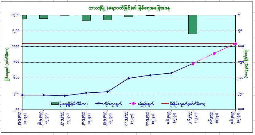 ၂၀၂၅ ခုနှစ်၊ ဇွန်လ (၂) ရက်နေ့ အချိန်တွင် မိုးလေဝသနှင့်ဇလဗေဒညွှန်ကြားမှုဦးစီးဌာနမှ “ရေကြီးခြင်းသတိပေးချက်” ကို အောက်ပါအတိုင်း ထုတ်ပြန်ထားပါသည်- ယနေ့မြန်မာစံတော်ချိန် (၁၂:၃၀) နာရီအချိန် တိုင်းထွာချက်အရ ဧရာဝတီမြစ်ရေသည် ကသာမြို့တွင် ယင်းမြို့၏ စိုးရိမ်ရေမှတ်အောက် ၈ ပေခွဲခန့်တွင် ရောက်ရှိနေပါသည်။ အဆိုပါမြစ်ရေသည် နောက် ၂ ရက်အတွင်း ယင်းမြို့၏စိုးရိမ်ရေမှတ်သို့ ရောက်ရှိနိုင်ပါသည်။ သို့ဖြစ်ပါ၍ ကသာမြို့နယ်အတွင်းရှိ မြစ်ကမ်းအနီးနှင့် မြေနိမ့်ပိုင်းနေထိုင်သူများအနေဖြင့် အထူးသတိပြုနေထိုင်ကြပါရန်နှင့် မြစ်ရေမြင့်တက်လာပါက အချိန်မီရှောင်ရှားနိုင်ပါရန် အသိပေးနှိုးဆော်အပ်ပါသည်။