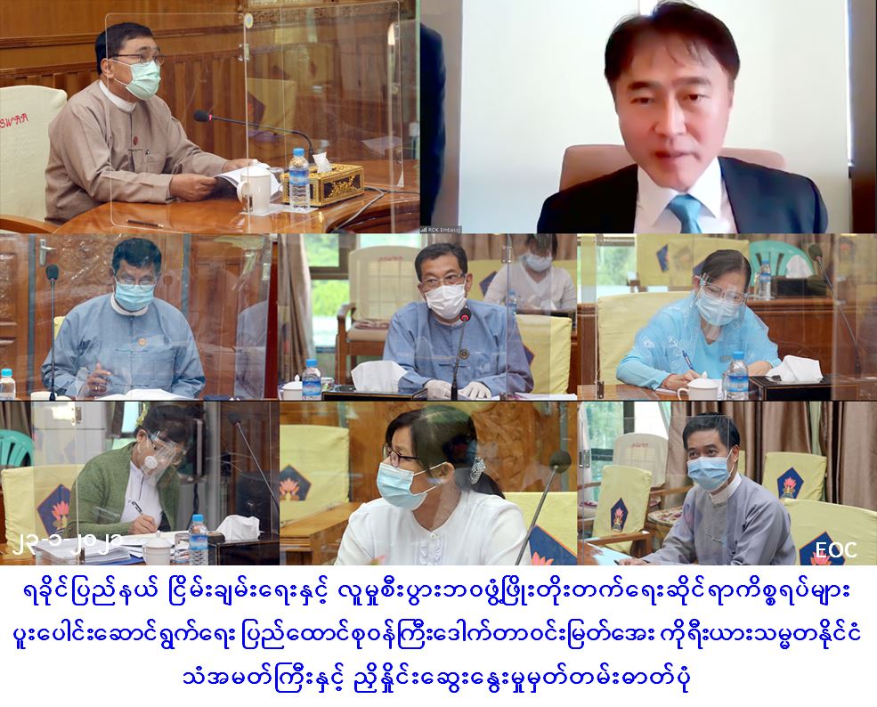 ရခိုင်ပြည်နယ် ငြိမ်းချမ်းရေးနှင့် လူမှုစီးပွားဘဝဖွံ့ဖြိုးတိုးတက်ရေးဆိုင်ရာကိစ္စရပ်များ ပူးပေါင်းဆောင်ရွက်ရေး ပြည်ထောင်စုဝန်ကြီးဒေါက်တာဝင်းမြတ်အေး ကိုရီးယားသမ္မတနိုင်ငံ သံအမတ်ကြီးနှင့် ညှိနှိုင်းဆွေးနွေး
