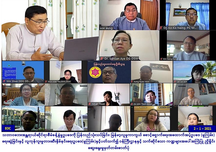ဇန်နဝါရီလ ၊ ၂ ရက်နေ့၊ ၂၀၂၁ လူမှုဝန်ထမ်း၊ ကယ်ဆယ်ရေးနှင့် ပြန်လည်နေရာချထားရေးဝန်ကြီးဌာန ပြည်ထောင်စုဝန်ကြီး ဒေါက်တာဝင်းမြတ်အေးသည် သဘာဝဘေး အန္တရာယ်ဆိုင်ရာစီမံခန့်ခွဲမှုဥပဒေကို ပြန်လည်သုံးသပ်ခြင်း၊ မြန်မာ့လူမှုကာကွယ်စောင့်ရှောက်ရေး အထောက်အပံ့ဥပဒေ(မူကြမ်း)ရေးဆွဲခြင်းနှင့် လူကုန်ကူးမှု တားဆီးနှိမ်နင်းရေးဥပဒေ (မူကြမ်း)ရေးဆွဲထားမှုနှင့်ပတ်သက်၍ ဝန်ကြီးဌာနနှင့် သက်ဆိုင်သော ကဏ္ဍများအပေါ် အကြံပြုဆွေးနွေးညှိနှိုင်းမှုများကို Virtual Meeting ဖြင့် ဆောင်ရွက်ခဲ့ပါသည်။ ညှိနှိုင်းဆွေးနွေးပွဲသို့ လူမှုဝန်ထမ်း၊ ကယ်ဆယ်ရေးနှင့်ပြန်လည်နေရာချထားရေးဝန်ကြီးဌာန ဒုတိယဝန်ကြီး၊ အမြဲတမ်းအတွင်းဝန်၊ ညွှန်ကြားရေးမှူးချုပ်များ၊ ဒုတိယညွှန်ကြားရေးမှူးချုပ်များ၊ ညွှန်ကြားရေးမှူးများနှင့် တာဝန်ရှိသူများတက်ရောက်ခဲ့ကြပါသည်။ ရှေးဦးစွာ ပြည်ထောင်စုဝန်ကြီးက ပြောကြားရာတွင် ယခုကဲ့သို့ ဒီမိုကရေစီအသွင်ကူးပြောင်းရေး … Read more