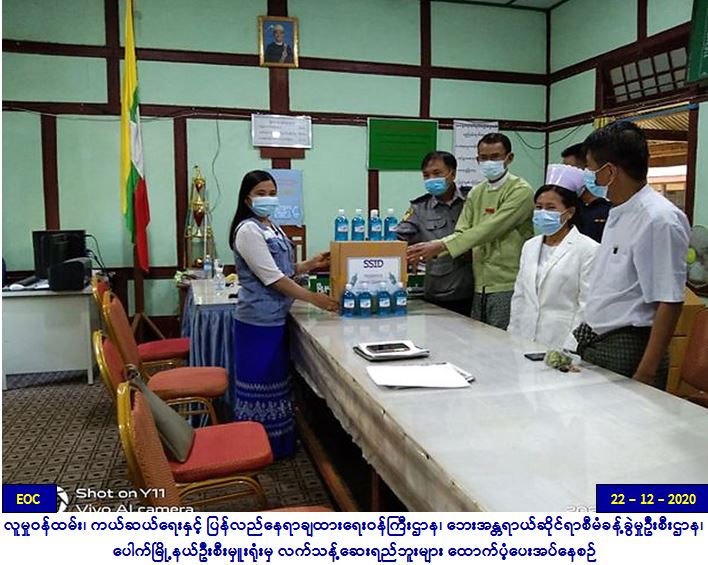 လူမှုဝန်ထမ်း၊ ကယ်ဆယ်ရေးနှင့်ပြန်လည်နေရာချထားရေး ၀န်ကြီးဌာန၊ ဘေးအန္တရာယ်ဆိုင်ရာစီမံခန့်ခွဲမှုဦးစီးဌာန၊ ပေါက် မြို့နယ်ဦးစီးမှူးရုံးမှ တာဝန်ရှိသူများသည် (၂၂-၁၂-၂၀၂၀) ရက်နေ့တွင် Hand Sanitizer (500ml) (၁၅၀) ဘူးအား ပေါက် မြို့နယ်အထွေထွေအုပ်ချုပ်ရေးဦးစီးဌာန၊ အစည်းအဝေးခန်းမ၌ မြို့နယ် Covid – 19 ရောဂါ ကာကွယ်၊ ထိန်းချုပ်၊ ကုသရေးနှင့် အရေးပေါ်တုံ့ပြန်ရေးကော်မတီထံသို့ ထောက်ပံ့ပေးအပ်ခဲ့ပါကြောင်း သတင်းရရှိပါသည်။ #otr #mgy_dec2020 Source: ပေါက်မြို့နယ်ဦးစီးမှူးရုံး (ဘစမ)