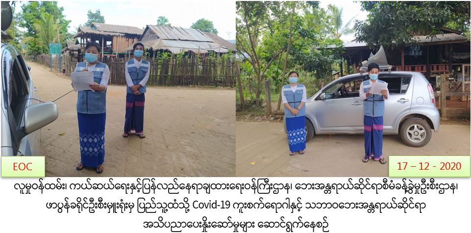 COVID-19 ကူးစက်ရောဂါ ပြန့်ပွားမှုမဖြစ်ပွားစေရန်နှင့် သဘာဝဘေးအန္တရာယ်ဆိုင်ရာ အသိပညာပေးခြင်းများ ဆောင်ရွက်မှု သတင်း