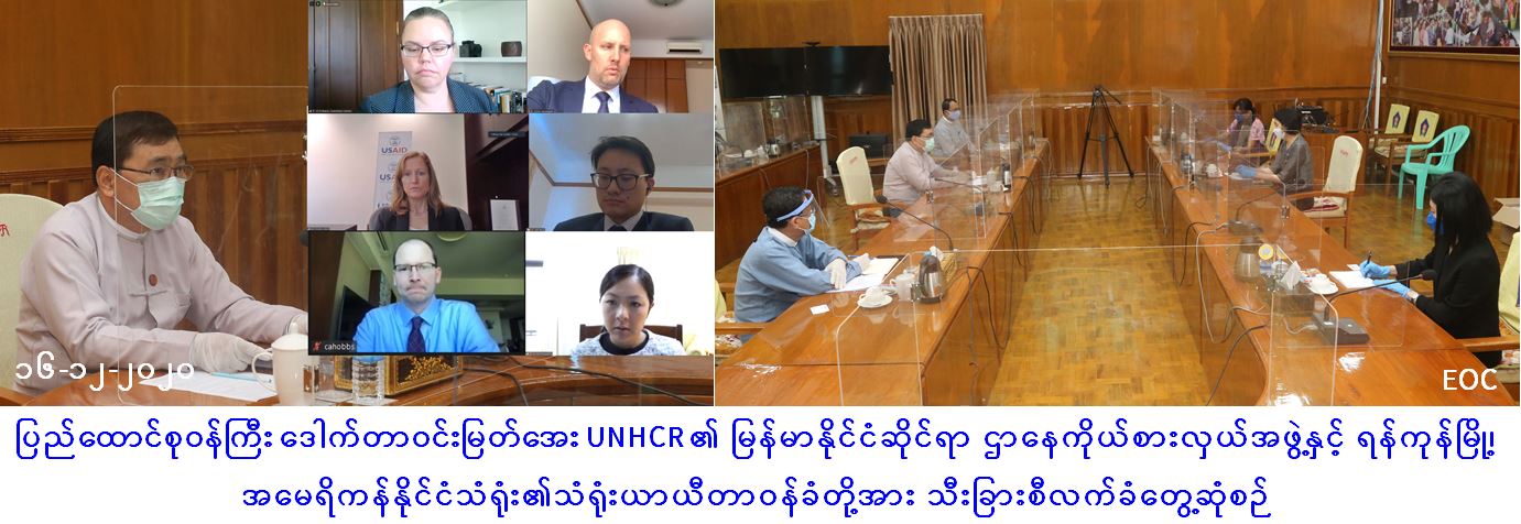 ပြည်ထောင်စုဝန်ကြီး ဒေါက်တာဝင်းမြတ်အေး UNHCR ၏ မြန်မာနိုင်ငံဆိုင်ရာ ဌာနေကိုယ်စားလှယ်အဖွဲ့နှင့် ရန်ကုန်မြို့၊ အမေရိကန်နိုင်ငံသံရုံး၏သံရုံးယာယီတာဝန်ခံတို့အား သီးခြားစီလက်ခံတွေ့ဆုံ