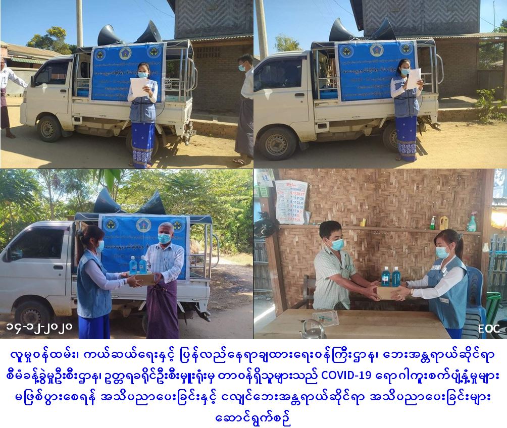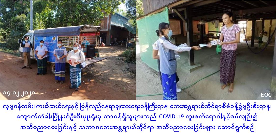 COVID-19 ကူးစက်ရောဂါနှင့် စပ်လျဉ်း၍ အသိပညာပေးခြင်းနှင့် သဘာဝဘေးအန္တရာယ်ဆိုင်ရာ အသိပညာပေးခြင်းများ ဆောင်ရွက်မှုသတင်း