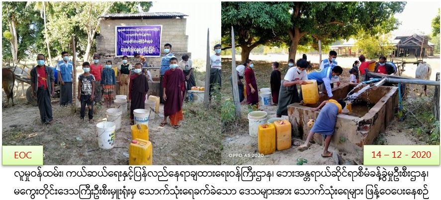 လူမှုဝန်ထမ်း၊ ကယ်ဆယ်ရေးနှင့်ပြန်လည်နေရာချထားရေးဝန်ကြီးဌာန၊ ဘေးအန္တရာယ်ဆိုင်ရာစီမံခန့်ခွဲမှုဦးစီးဌာန၊ ဇီးကုန်းမြို့နယ်ဦးစီးမှူးရုံးမှ တာဝန်ရှိသူများသည် (၁၄-၁၂-၂၀၂၀) ရက်နေ့ နံနက် (၀၈း၀၀)နာရီအချိန်မှ (၁၁း၀၀)နာရီအချိန်ထိ ပဲခူးတိုင်းဒေသကြီး၊ သာယာဝတီခရိုင်၊ နတ်တလင်းမြို့နယ်၊ မြို့မရပ်ကွက်၊ သာဇီရပ်ကွက်၊ ရွာမရပ်ကွက်နှင့် ဇီးကုန်းလေးရပ်ကွက်တို့ရှိ ပြည်သူများအား COVID-19 ရောဂါကူးစက်ပြန့်နှံ့မှုများ မဖြစ်ပွားစေရန်အတွက် အသိပညာပေးခြင်းနှင့် မိုးကြိုးဘေး၊ ရေဘေး၊ ငလျင်ဘေးအန္တရာယ်ကြိုတင်ကာကွယ်ရေး အသိပညာပေးလက်ကမ်းစာစောင်များ၊ ပိုစတာများနှင့် Surgical Maskများ ဖြန့်ဝေခြင်းတို့ကို သက်ဆိုင်ရာမြို့နယ်အထွေထွေအုပ်ချုပ်ရေးဦးစီးဌာန၊ မြို့နယ်အားကစားနှင့်ကာယပညာဦးစီးဌာန၊ မြို့နယ်ပြန်ကြားရေးနှင့်ပြည်သူ့ဆက်ဆံရေးဦးစီးဌာနတို့မှတာဝန်ရှိသူများနှင့်ပူးပေါင်း၍ ဆောင်ရွက်ခဲ့ကြောင်း သတင်းရရှိပါသည်။ #ar #bgo_dec2020 Source: ဇီးကုန်းမြို့နယ်ဦးစီးမှူးရုံး (ဘစမ)
