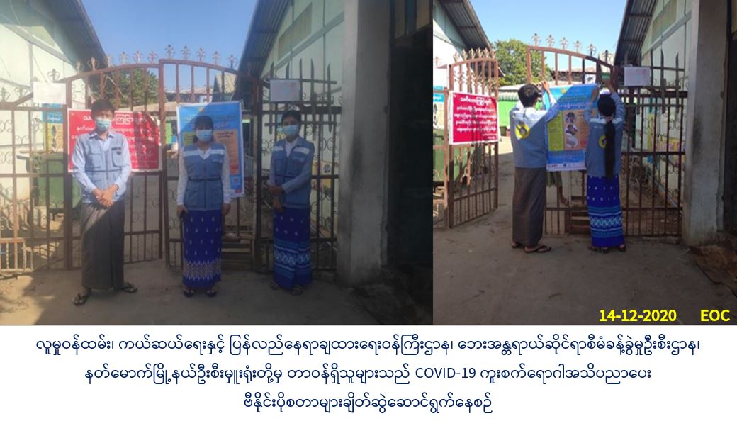 COVID-19 ကူးစက်ရောဂါ အသိပညာပေးဗီနိုင်းပိုစတာများချိတ်ဆွဲဆောင်ရွက်မှုသတင်း