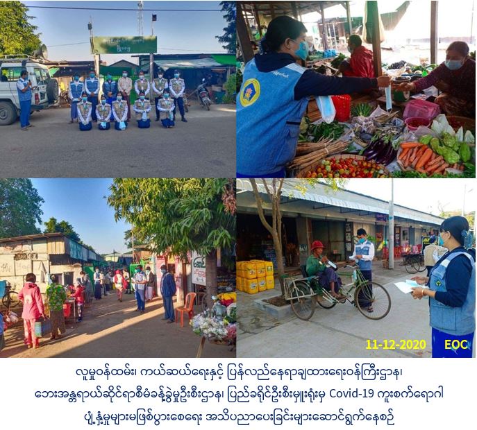 လူမှုဝန်ထမ်း၊ ကယ်ဆယ်ရေးနှင့် ပြန်လည်နေရာချထားရေးဝန်ကြီးဌာန၊ ဘေးအန္တရာယ်ဆိုင်ရာစီမံခန့်ခွဲမှုဦးစီးဌာန၊ ပြည်ခရိုင်ဦးစီးမှူးရုံးမှ တာဝန်ရှိသူများသည် (၁၁-၁၂-၂၀၂၀) ရက်နေ့၌ ပြည်ခရိုင်၊ သဲကုန်းမြို့၊ မြို့မဈေးတွင် (Covid-19) ရောဂါ ကူးစက်ပြန့်ပွားမှုမရှိစေရေး လော်စပီကာဖြင့်အသိပညာပေးဆော်သြပြီး ဈေးသည်၊ ဈေးဝယ်များနှင့် လမ်းသွားလမ်းလာများအား Surgical mask များဖြန့်ဝေခြင်းကို သဲကုန်းမြို့နယ် ကြက်ခြေနီတပ်ဖွဲ့တို့နှင့် ပူးပေါင်း၍ ဆောင်ရွက်ခဲ့ပါကြောင်း သတင်းရရှိပါသည်။ Source: ပြည်ခရိုင်ဦးစီးမှူးရုံး (ဘစမ) #ar #bgo_dec2020