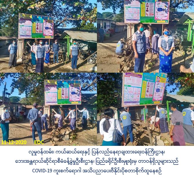 COVID-19 ကူးစက်ရောဂါ အသိပညာပေးဗီနိုင်းပိုစတာစိုက်ထူမှုသတင်း