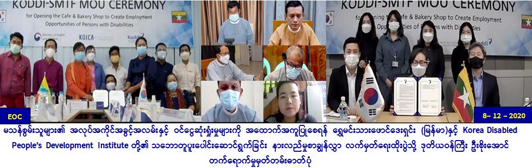 မသန်စွမ်းသူများ၏ အလုပ်အကိုင်အခွင့်အလမ်းနှင့် ဝင်ငွေဆုံးရှုံးမှုများကို အထောက်အကူပြုစေရန် ရွှေမင်းသားဖောင်ဒေးရှင်း (မြန်မာ)နှင့် Korea Disabled People’s Development Institute တို့၏ သဘောတူပူးပေါင်းဆောင်ရွက်ခြင်း နားလည်မှု စာချွန်လွှာ လက်မှတ်ရေးထိုးပွဲသို့ ဒုတိယဝန်ကြီး ဦးစိုးအောင် တက်ရောက်
