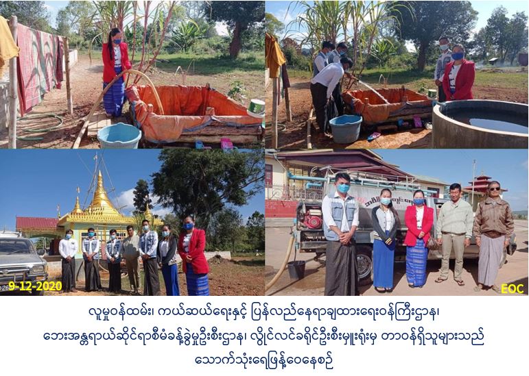 လူမှုဝန်ထမ်း၊ ကယ်ဆယ်ရေးနှင့် ပြန်လည်နေရာချထားရေးဝန်ကြီးဌာန၊ ဘေးအန္တရာယ်ဆိုင်ရာစီမံခန့်ခွဲမှုဉီးစီးဌာန၊ လွိုင်လင်ခရိုင်ဦးစီးမှူးရုံးမှ တာဝန်ရှိသူများသည် (၉-၁၂-၂၀၂၀) ရက်နေ့တွင် ရပ်ကွက်အုပ်ချုပ်ရေးမှူးရုံးမှတာဝန်ရှိသူများ နှင့်အတူ လွိုင်လင်မြို့၊ ရပ်ကွက် (၄) ၊ မွေတော်တပ်ဦး ဘုန်းကြီးကျောင်း၊မွေတော်ဖီပြဘုရားစေတီတော်၌ သောက်သုံးရေများ အခက်အခဲတွေ့ကြုံနေပါသဖြင့်သောက်သုံးရေဂါလံ (၆၀၀၀) အား ဖြန့်ဝေ လှူဒါန်းပေးခဲ့ပါ ကြောင်းသတင်းရရှိပါသည်။ Source: လွိုင်လင်ခရိုင်ဦးစီးမှူးရုံး (ဘစမ) #ha_drg #shn_dec2020