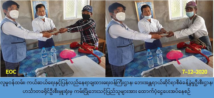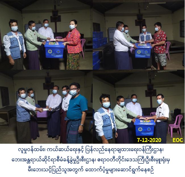လူမှုဝန်ထမ်း၊ ကယ်ဆယ်ရေးနှင့် ပြန်လည်နေရာချထားရေးဝန်ကြီးဌာန၊ ဘေးအန္တရာယ် ဆိုင်ရာစီမံခန့်ခွဲမှုဦးစီးဌာန၊ မော်လမြိုင်ကျွန်းမြို့နယ်ဦးစီးမှူးရုံးမှ တာဝန်ရှိသူများသည် (၆-၁၂-၂၀၂၀) ရက်နေ့တွင် လပွတ္တာခရိုင်၊ မော်လမြိုင်ကျွန်းမြို့နယ်၊ အောက်မအူတုံးကျေးရွာ အုပ်စု၊ ကုန်းတန်းရွာသစ်ကျေးရွာ၌ ဖြစ်ပွားခဲ့သော မီးလောင်မှုကြောင့် ပျက်စီးခဲ့သော နေအိမ်(၁)လုံး၊ အိမ်ထောင်စု(၁)စုမှ ဘေးသင့်လူဦးရေ (၃)ဦးအတွက် ကယ်ဆယ်ရေးပစ္စည်း (၁၇)မျိုးပါ(၁)ပုံး၊ အိမ်ဆောက်ပစ္စည်းဖိုးထောက်ပံ့ငွေ (၁၀၀,၀၀၀ိ/-) ကျပ်၊ ဆန်ရိက္ခာ(၇) ရက်စာဖိုးထောက်ပံ့ငွေ (၆,၃၀၀ိ/-) ကျပ်၊ စုစုပေါင်း (၁၀၆,၃၀၀ိ/-) ကျပ်အား မော်လမြိုင် ကျွန်းမြို့နယ် အောက်မအူတုံးကျေးရွာအုပ်စု၊ ကုန်းတန်းရွာသစ်ကျေးရွာ၌ (၇-၁၂-၂၀၂၀) ရက်နေ့၊ (၁၆:၄၅) … Read more