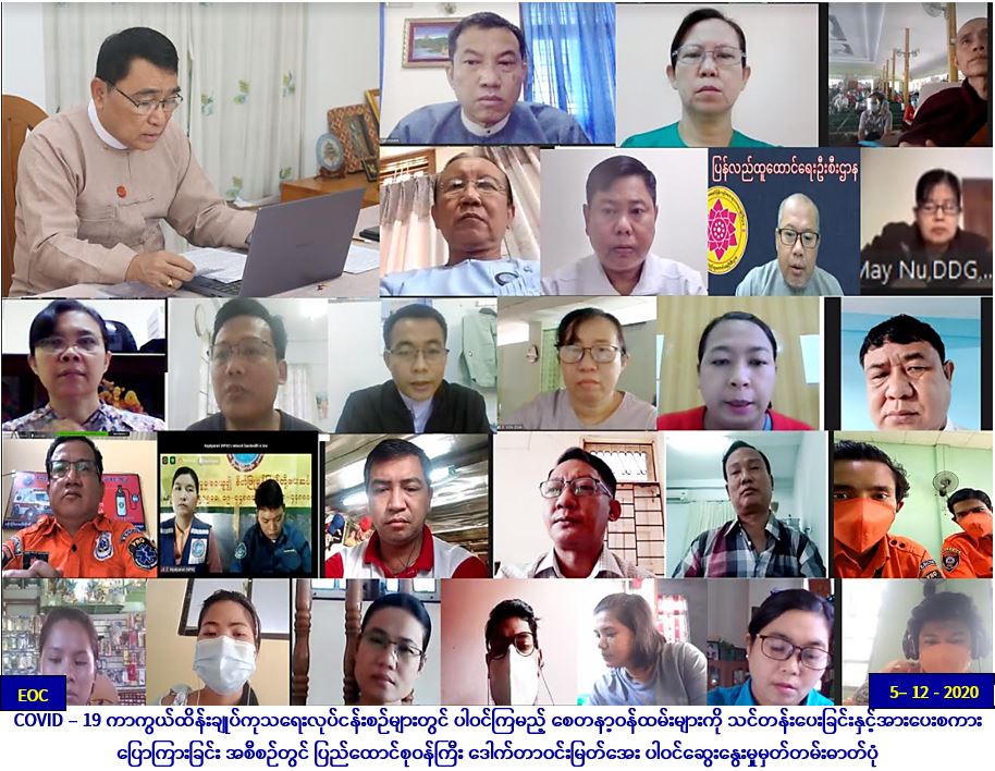 COVID – 19 ကာကွယ်ထိန်းချုပ်ကုသရေးလုပ်ငန်းစဉ်များတွင် ပါ၀င်ကြမည့် စေတနာ့၀န်ထမ်းများကို သင်တန်းပေးခြင်းနှင့် အားပေးစကားပြော ကြားခြင်း အစီစဉ်တွင် ပြည်ထောင်စု၀န်ကြီး ဒေါက်တာ၀င်းမြတ်အေး ပါ၀င်ဆွေးနွေးမှုသတင်း