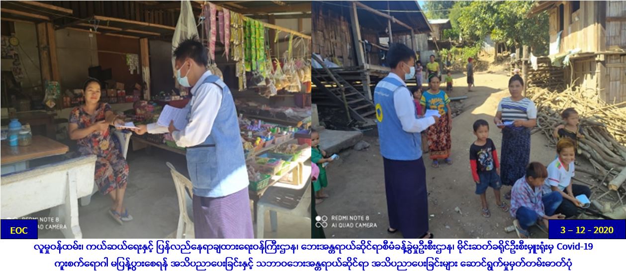 Covid-19 ကူးစက်ရောဂါ မပြန့်ပွားစေရန် အသိပညာပေးခြင်းနှင့် သဘာဝဘေးအန္တရာယ်ဆိုင်ရာ အသိပညာပေးခြင်းများ ဆောင်ရွက်မှုသတင်း