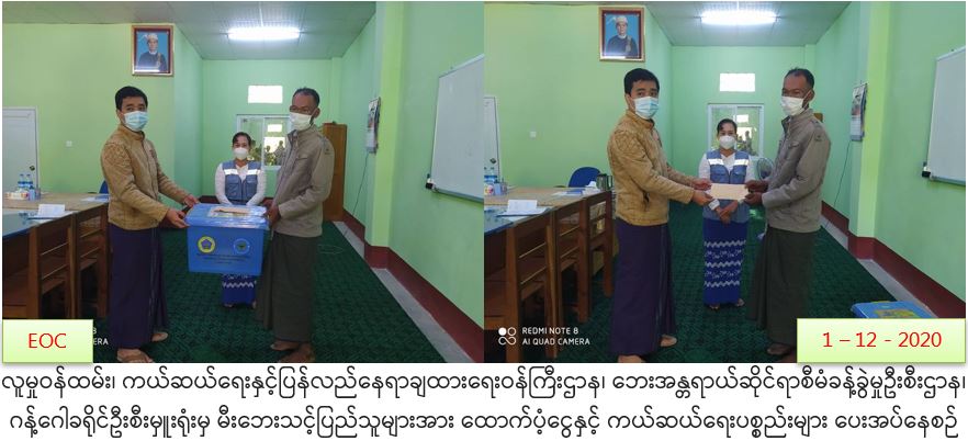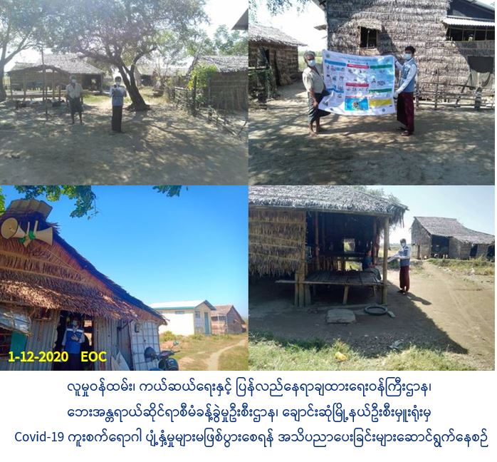 လူမှုဝန်ထမ်း၊ ကယ်ဆယ်ရေးနှင့် ပြန်လည်နေရာချထားရေးဝန်ကြီးဌာန၊ ဘေးအန္တရာယ်ဆိုင်ရာစီမံခန့်ခွဲမှုဦးစီးဌာန၊ မိုင်းဆတ်ခရိုင်ဦးစီးမှူးရုံးမှ တာဝန်ရှိသူများသည် (၃၀-၁၁-၂၀၂၀) ရက်နေ့တွင် မိုင်းဆတ်မြို့နယ်၊ မယ်ဆွမ်(တောင်) ရပ်ကွက်၊ မယ်ဆွမ်(မြောက်)ရပ်ကွက်၊ ဝမ်ကျောင်းရပ်ကွက်၊ နောင်ဟီးရပ်ကွက်၊ မြို့သစ်ရပ်ကွက်၊ ဝိန်းနေရပ်ကွက်၊ ဝိန်းဝိုင်ရပ်ကွက်၊ ကျဒယ်ရပ်ကွက်၊ နားကောရပ်ကွက်၊ နားမရပ်ကွက်နှင့် နောင်ပိုရွာတို့၌ Covid-19 ကူးစက်ရောဂါ ပျံ့နှံ့မှုများမဖြစ်ပွားစေရန် ပြည်သူများ လိုက်နာရမည့် ကျန်းမာရေးအမူအကျင့်များ အသိပညာပေးခြင်းနှင့် သဘာဘေးဆိုင်ရာ အသိပညာပေးခြင်းများကို အသံချဲ့စက်များဖြင့် လှည့်လည်ဟောပြောခြင်း၊ Masks နှင့် အသိပညာပေးလက်ကမ်းစာစောင်များ ဖြန့်ဝေပေးခြင်းတို့အား ဆောင်ရွက်ခဲ့ပါကြောင်း သတင်းရရှိပါသည်။ Source: မိုင်းဆတ်ခရိုင်ဦးစီးမှူးရုံး … Read more