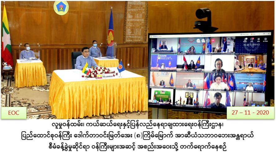 (၈)ကြိမ်မြောက် အာဆီယံသဘာဝဘေးအန္တရာယ်စီမံခန့်ခွဲမှုဆိုင်ရာ ဝန်ကြီးများအဆင့် အစည်းအဝေးကို ယနေ့နံနက်ပိုင်းက Video Conferencing စနစ်ဖြင့် ကျင်းပပြုလုပ်ရာ လူမှုဝန်ထမ်း၊ ကယ်ဆယ်ရေးနှင့် ပြန်လည်နေရာချထားရေးဝန်ကြီးဌာန ပြည်ထောင်စုဝန်ကြီး ဒေါက်တာဝင်းမြတ်အေး ဦးဆောင်သော မြန်မာကိုယ်စားလှယ်များ တက်ရောက်ခဲ့ကြပါသည်။ အဆိုပါ အစည်းအဝေးတွင် အာဆီယံနှင့် UNESCAP တို့ ပူးပေါင်းရေးဆွဲသည့် ASEAN-UNESCAP Ready for the Dry Years အစီရင်ခံစာ ဒုတိယအကြိမ်ထုတ်ဝေမှုကို မိတ်ဆက်ခြင်းနှင့် ဒေသတွင်း မိုးခေါင်ရေရှားဘေးအန္တရာယ်ဆိုင်ရာ မှတ်တမ်းတင်ဗွီဒီယိုပြသခြင်းတို့ကို ဆောင်ရွက်ခဲ့ ပါသည်။ ထို့နောက် အာဆီယံသဘာဝဘေးအန္တရာယ်စီမံခန့်ခွဲမှုဆိုင်ရာ ဝန်ကြီးများအဆင့် အစည်း အဝေးကို ဆက်လက်ကျင်းပပြုလုပ်ရာ အလှည့်ကျအိမ်ရှင်ဖြစ်သည့် ဖိလစ်ပိုင်နိုင်ငံ၊ Office of the Civil Defense မှ Under Secretary ဖြစ်သူ H.E. Mr. Ricardo B. Jalad က ကြိုဆိုနှုတ်ခွန်းဆက် … Read more