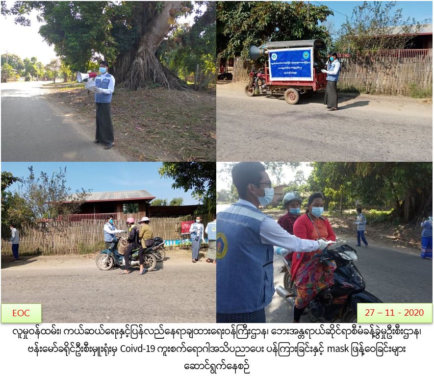Covid-19 ကူးစက်ရောဂါအသိပညာပေးခြင်းနှင့် mask များဖြန့်ဝေခြင်း