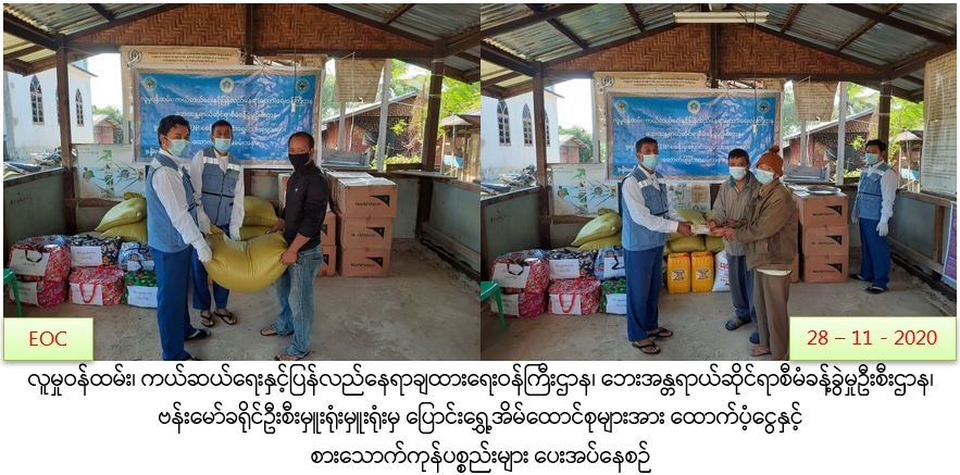 လူမှုဝန်ထမ်း၊ ကယ်ဆယ်ရေးနှင့်ပြန်လည်နေရာချထားရေးဝန်ကြီးဌာန၊ ဘေးအန္တရာယ်ဆိုင်ရာစီမံခန့်ခွဲမှုဦးစီးဌာန၊ ဗန်းမော်ခရိုင်ဦးစီးမှူးရုံးမှ တာဝန်ရှိသူများသည်(၂၈-၁၁-၂၀၂၀)ရက်နေ့ နံနက်(၀၉:၁၀)နာရီအချိန်တွင် ဗန်းမော်မြို့နယ်၊မူရင်း IDPs စခန်းမှ ဗန်းမော်မြို့နယ်၊ (၂)မိုင်အောင်သာ၊(၃)မိုင်ရွှေပြည်သာရပ်ကွက်နှင့် မံစီမြို့နယ်၊ ကောင်လွင်ကျေးရွာ၊ကုန်းတိန်ကျေးရွာနှင့်ရီခူးမံခံကျေးရွာများသို့ ပြောင်းရွှေ့အိမ်ထောင်စု(၁၁)စု၊ လူဦးရေ(၅၀)ဦးတို့အတွက် အိမ်ထောင်စု(၁)စုလျှင် (၃၂)မျိုးပါ Relief Kitဖာ(၁)ဖာ၊ ပြောင်းရွှေ့စရိတ်(၁၀၀၀၀ဝိ/-)၊ (ဆန်၊ဆီ၊ဆား၊ပဲ)(၁)လစာနှုန်းတို့ဖြင့် စုစုပေါင်း Relief Kitဖာ(၁၁)ဖာ၊ ပြောင်းရွှေ့စရိတ်(၁,၁၀၀,၀၀ဝိ/-)၊ (ဆန်၊ဆီ၊ဆား၊ပဲ)(၁)လစာတန်ဖိုးငွေ(၆၁၇၈၀ဝိ/-)တို့အား ပြောင်းရွှေ့ပြည်သူထံသို့ လက်ဝယ်အရောက် ထောက်ပံ့ပေးအပ်ခဲ့ကြောင်း သတင်းရရှိပါသည်။ #ha_otr #kcn_nov2020 Source: ဗန်းမော်ခရိုင်ဦးစီးမှူးရုံး (ဘစမ)