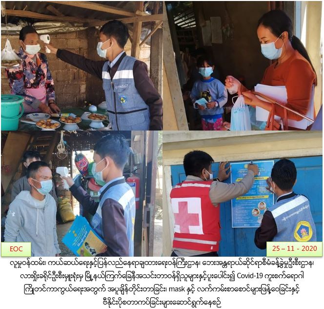 လူမှုဝန်ထမ်း၊ ကယ်ဆယ်ရေးနှင့်ပြန်လည်နေရာချထားရေးဝန်ကြီးဌာန၊ ဘေးအန္တရာယ်ဆိုင်ရာစီမံခန့်ခွဲမှုဦးစီးဌာန၊ လားရှိုးခရိုင်ဦးစီးမှူးရုံးမှ တာဝန်ရှိသူများသည် အထွေထွေအုပ်ချုပ်ရေးဦးစီးဌာန၊ လားရှိုးမြို့နယ်ကြက်ခြေနီအသင်းတို့နှင့်ပူးပေါင်း၍ (၂၅-၁၁-၂၀၂၀)ရက်နေ့တွင် လားရှိုးမြို့နယ်၊ မိုင်းယော်ကျေးရွာအုပ်စု၊ မိုင်းယော်ကျေးရွာ၌ COVID-19 ကူးစက်မှုမဖြစ်ပွားစေရန် ပြည်သူများ လိုက်နာရမည့်ကျန်းမာရေးအမူအကျင့်များ အသိပညာပေးခြင်းနှင့် သဘာဝဘေးဆိုင်ရာအသိပညာပေးခြင်းများကို အသံချဲ့စက်များဖြင့် လှည့်လည်ဟောပြောခဲ့ပြီး၊ Mask နှင့် COVID-19 ကာကွယ်နိုင်ရန် နှာခေါင်းစည်းကို အသုံးပြုခြင်းဆိုင်ရာအကြံပြုချက်များ၊ နှာခေါင်စည်းကိုအသုံးပြုရာတွင် လိုက်နာရမည့်အချက်များ၊ COVID-19 ကာကွယ်ရေးစနစ်ကျလက်ဆေးပေးပါဝင်သည့် လက်ကမ်းစာစောင်များ ဖြန့်ပေးဝေခြင်း၊ Hand Gelများဖြင့် လက်သန့်စင်ပေးခြင်း၊ အပူချိန်တိုင်းကိရိယာဖြင့် ကိုယ်အပူချိန်တိုင်းပေးခြင်းတို့အား ဆောင်ရွက်ခဲ့ကြောင်း သတင်းရရှိပါသည်။ #ar #shn_nov2020 … Read more