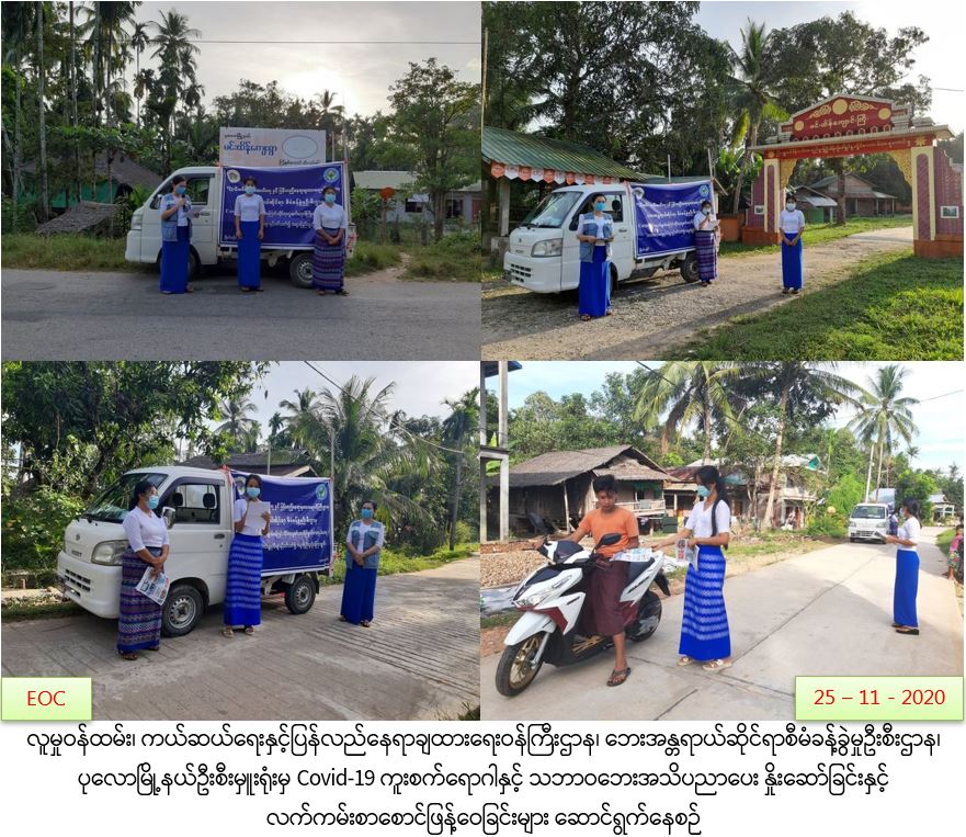 Covid-19 ကူးစက်နှုန်း မပြန့်ပွားစေရန်နှင့် သဘာဝဘေးအန္တရာဆိုင်ရာ အသိပညာပေးခြင်းများဆောင်ရွက်မှုသတင်း