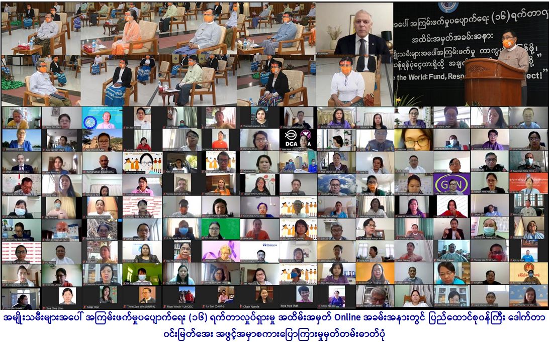 ၂၅-၁၁-၂၀၂၀၊ နေပြည်တော် အမျိုးသမီးများအပေါ် အကြမ်းဖက်မှုပပျောက်ရေး (၁၆) ရက်တာလှုပ်ရှားမှု အထိမ်းအမှတ် Online အခမ်းအနားကို ယနေ့နံနက်ပိုင်းက လူမှု၀န်ထမ်း၊ကယ်ဆယ်ရေးနှင့် ပြန်လည်နေရာချထားရေး၀န်ကြီးဌာနတွင်ကျင်းပရာ ပြည်သူ့လွှတ်တော်နှင့် အမျိုးသားလွှတ်တော်၊ အမျိုးသမီးနှင့် ကလေး သူငယ်အခွင့်အရေးဆိုင်ရာကော်မတီ ဥက္ကဌများနှင့် ကိုယ်စားလှယ်များ၊ မြန်မာနိုင်ငံ အမျိုးသားလူ့အခွင့်အရေးကော်မရှင် ဒုတိယဥက္ကဌနှင့် အဖွဲ့ဝင်များ၊ United Nations Resident Coordinator and Humanitarian Coordinator, Mr. Ola Almgren၊ မြန်မာနိုင်ငံလုံးဆိုင်ရာ အမျိုးသမီးကော်မတီဝင်များ၊ နေပြည်တော် အမျိုးသမီးကော်မတီနှင့် တိုင်းဒေသကြီး/ ပြည်နယ် … Read more