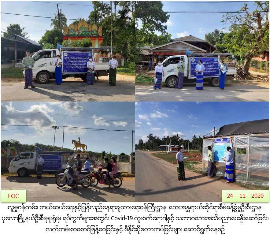 Covid-19 ကူးစက်နှုန်း မပြန့်ပွားစေရန်နှင့် သဘာဝဘေးအန္တရာဆိုင်ရာ အသိပညာပေးခြင်းများဆောင်ရွက်မှုသတင်း
